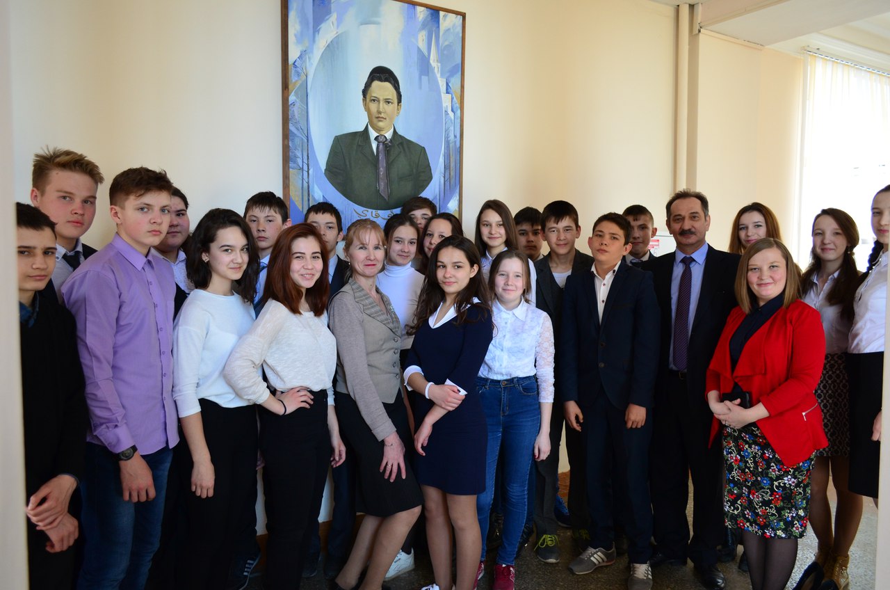 В завершении школьники совершили экскурсию по кабинетам и центрам кафедры татарского языка и литературы ИФОМК. И конечно же состоялось коллективное фотографирование у портрета великого татарского поэта Габдуллы Тукая (автор – заслуженный художник Республики Башкортостан и Республики Татарстан Вакиль Шайхетдинов). Надеемся, что теплая и дружеская атмосфера встречи оставила у наших гостей светлый отпечаток, и мы сумели пробудить интерес к личности и творчеству Габдуллы Тукая.