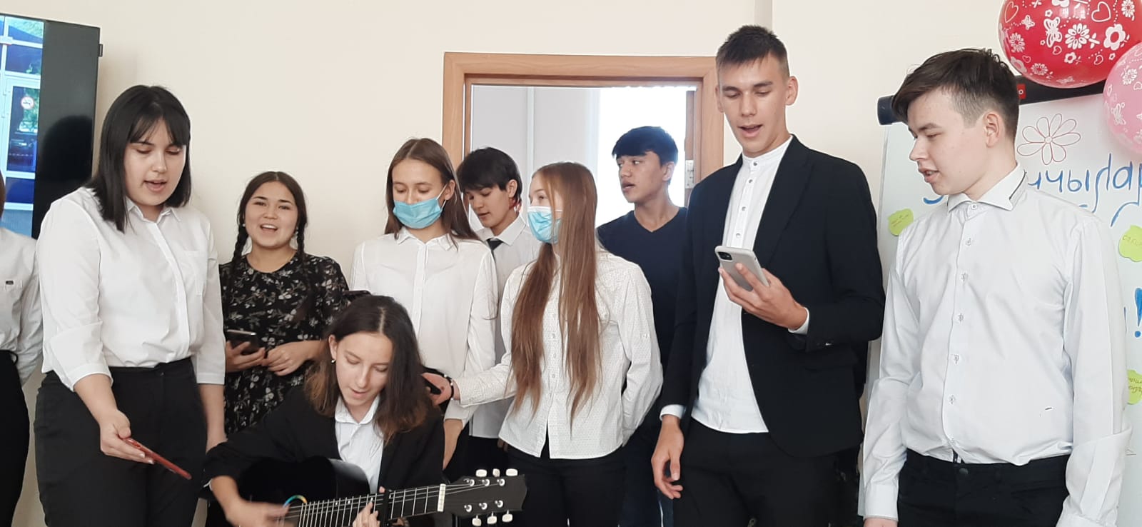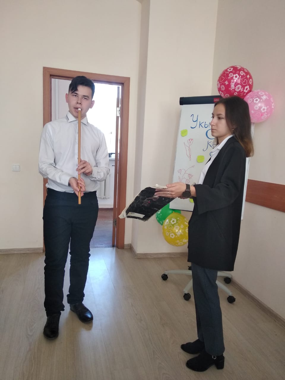 В свою очередь студенты двух курсов подготовили концертную программу. Они поздравили педагогов песнями, танцами, стихотворениями, сыграли на курае и гитаре, ставили смешные сценки про учёбу и педагогическую деятельность.