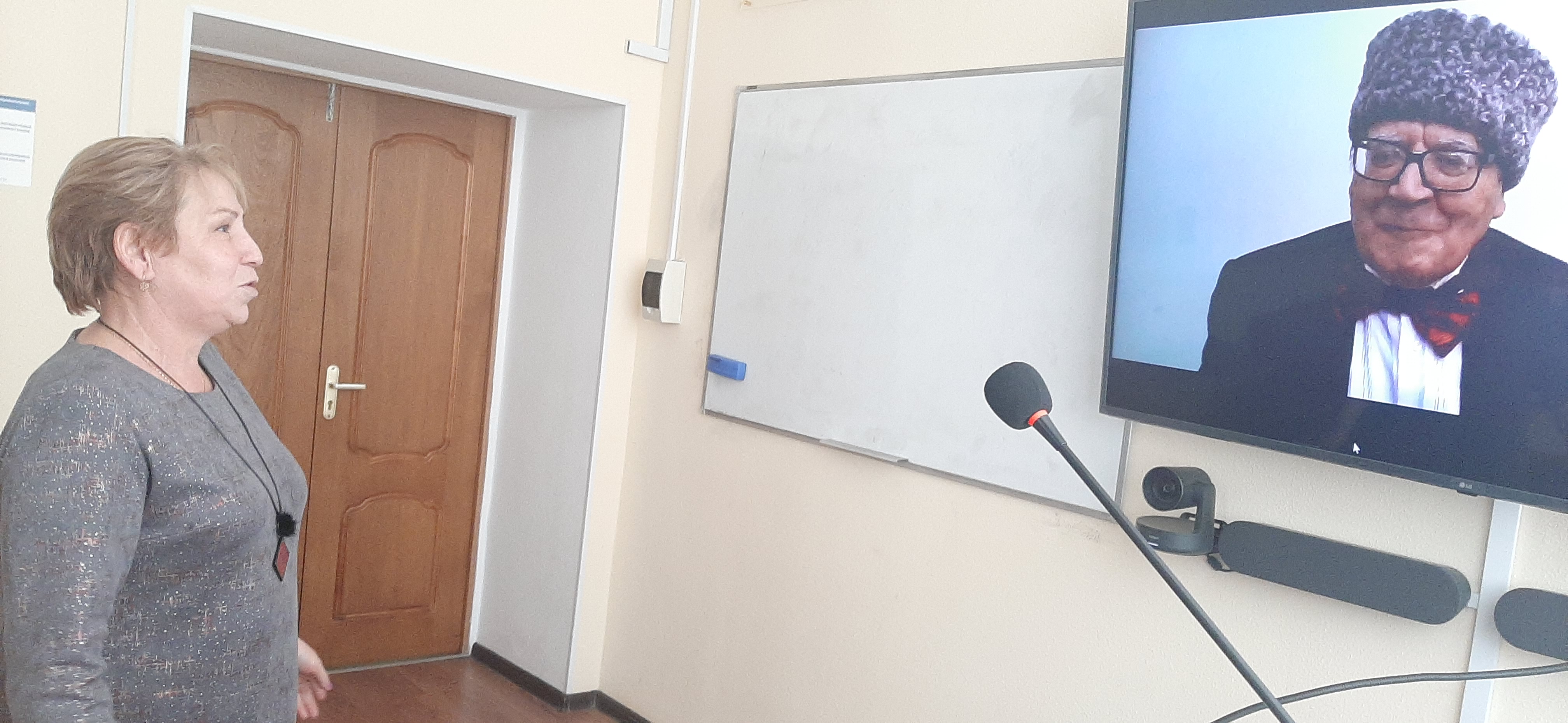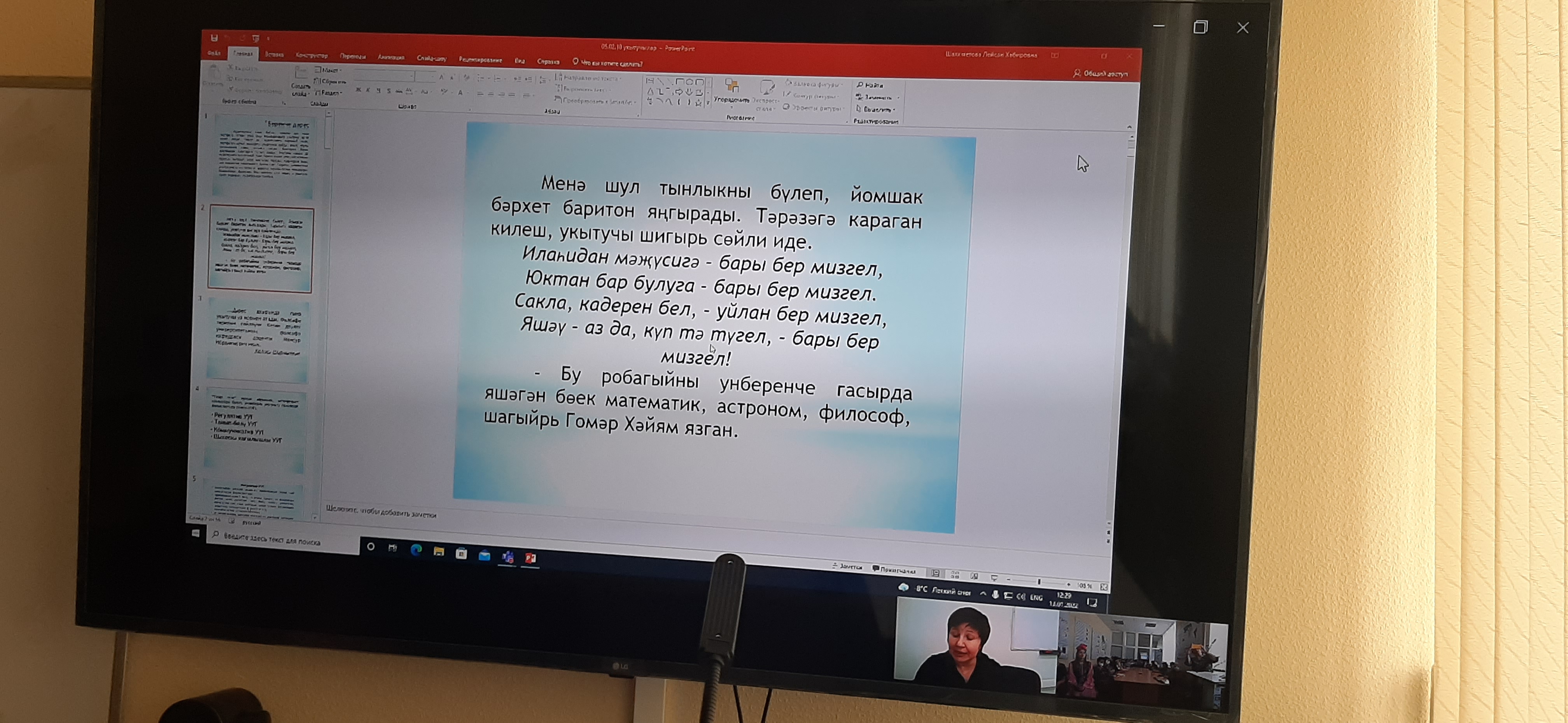 Во второй части мероприятия – обсуждении научно-методической темы «Творчество Радифа Гаташа в школе» принимал онлайн участие из Казани сам Радиф Гаташ – народный поэт Татарстана, лауреат Государственной премии им. Габдуллы Тукая. Поэт, вдохновленный от встречи с учителями родного языка – хранителями духовного наследия, земляками, рассказал о своих достижениях, демонстрировал новые издания стихотворений, альбомы о своей жизни и творчестве, прочитал новые стихотворения. Участники семинара оживленно включились в беседу, обсудили новые научно-методические возможности в изучении творчества поэта в школе, получили ответы на интересующие вопросы. Творческим номером выступили студенты 1 курса направления «Педагогическое образование» профиль «Родной язык и литература. Английский язык» Инзиля Мухаметшина, Камиль Нафиков, Лейсан Зубаирова.