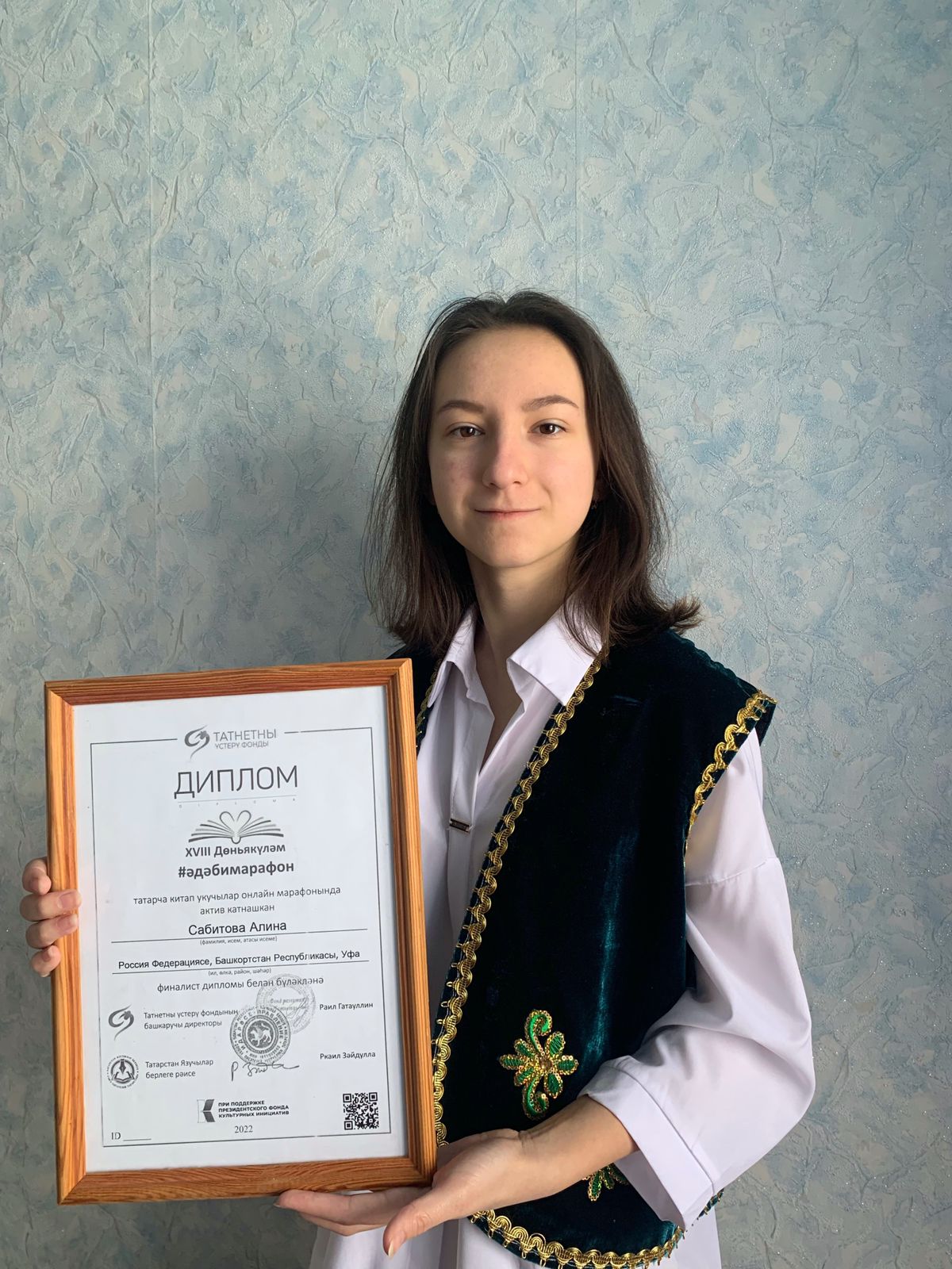 Студентка 1 курса татарского отделения ИФОМК Акмуллинского университета, член литературного кружка «Тамчылар» Алина Сабитова приняла участие в литературном марафоне и вышла в финал.