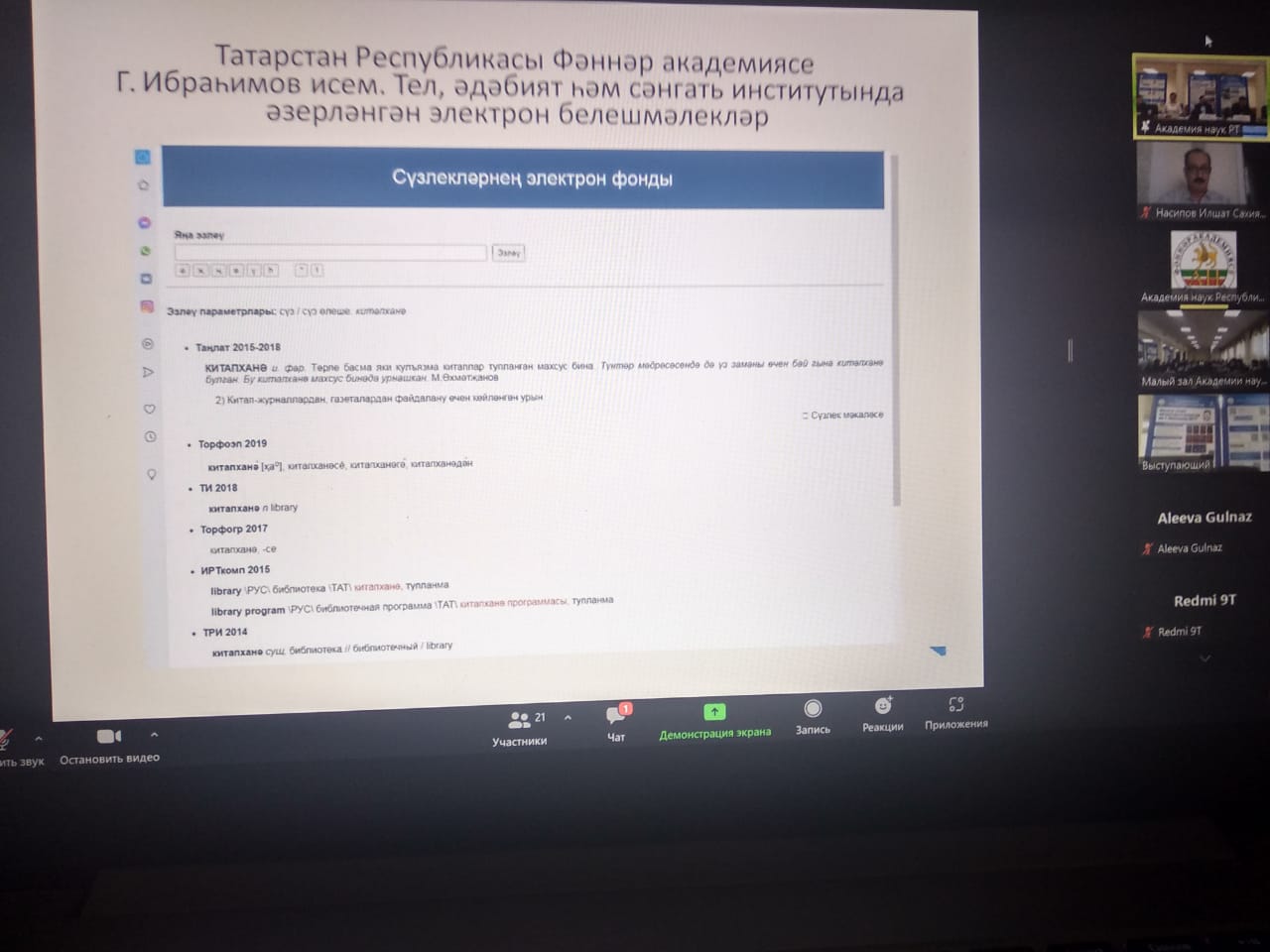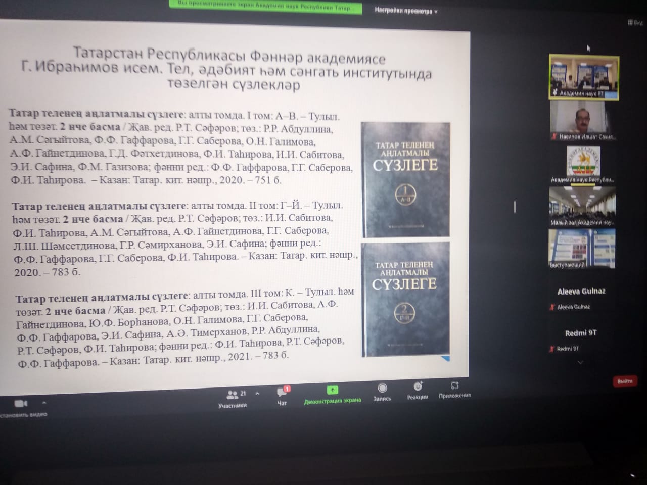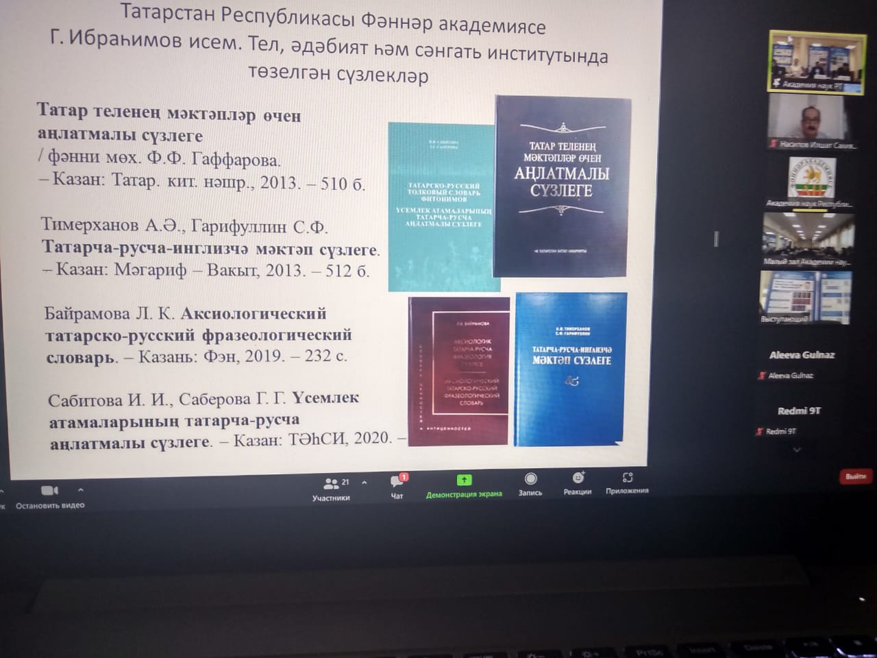 В рамках Международного дня родных языков 21 февраля 2022 года члены кафедры татарского языка и литературы ИФОМК БГПУ им. М. Акмуллы приняли участие в работе Круглого стола «Актуальные проблемы татарской лексикографии», организованный в онлайн формате на платформе «ZOOM» Институтом языка, литературы и искусства им. Г. Ибрагимова Академии наук Республики Татарстан.