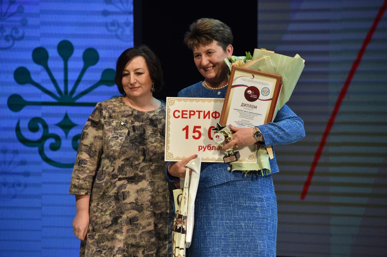 Среди номинантов конкурса были награждены выпускница БГПУ 1995 г. Хуснутдинова Дамира Фавадисовна (учительница татарского языка и литературы ООШ с. Новый Буртюк – филиал МБОУ СОШ д. Новая Бура МР Краснокамский район РБ) и выпускница БГПУ им. М. Акмуллы 2021 г., магистрант ИФОМК по направлению «Педагогическое образование» по профилю «Языки и литературы в межкультурной коммуникации». Гизетдинова Лейсан Анваровна (учительница татарского языка и литературы, русского языка и литературы МАОУ «Татарская гимназия №84» ГО г. Уфа).