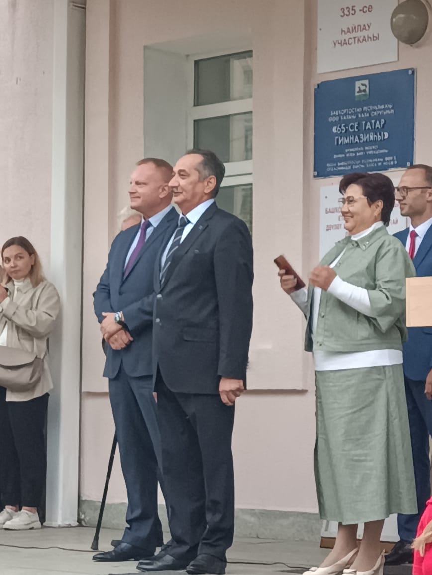 МАОУ «Татарская гимназия №65» ГО г. Уфа является базовой школой кафедры татарского языка и литературы. Поэтому И.С. Насипов остановился на результатах взаимовыгодного сотрудничества гимназии и Акмуллинского университета, ИФОМК и кафедры. В конце своего выступления он от имени татарской общественности республики подарил гимназии портрет Габдуллы Тукая, автором которого является заслуженный деятель искусств РБ Мэлс Вафин.
