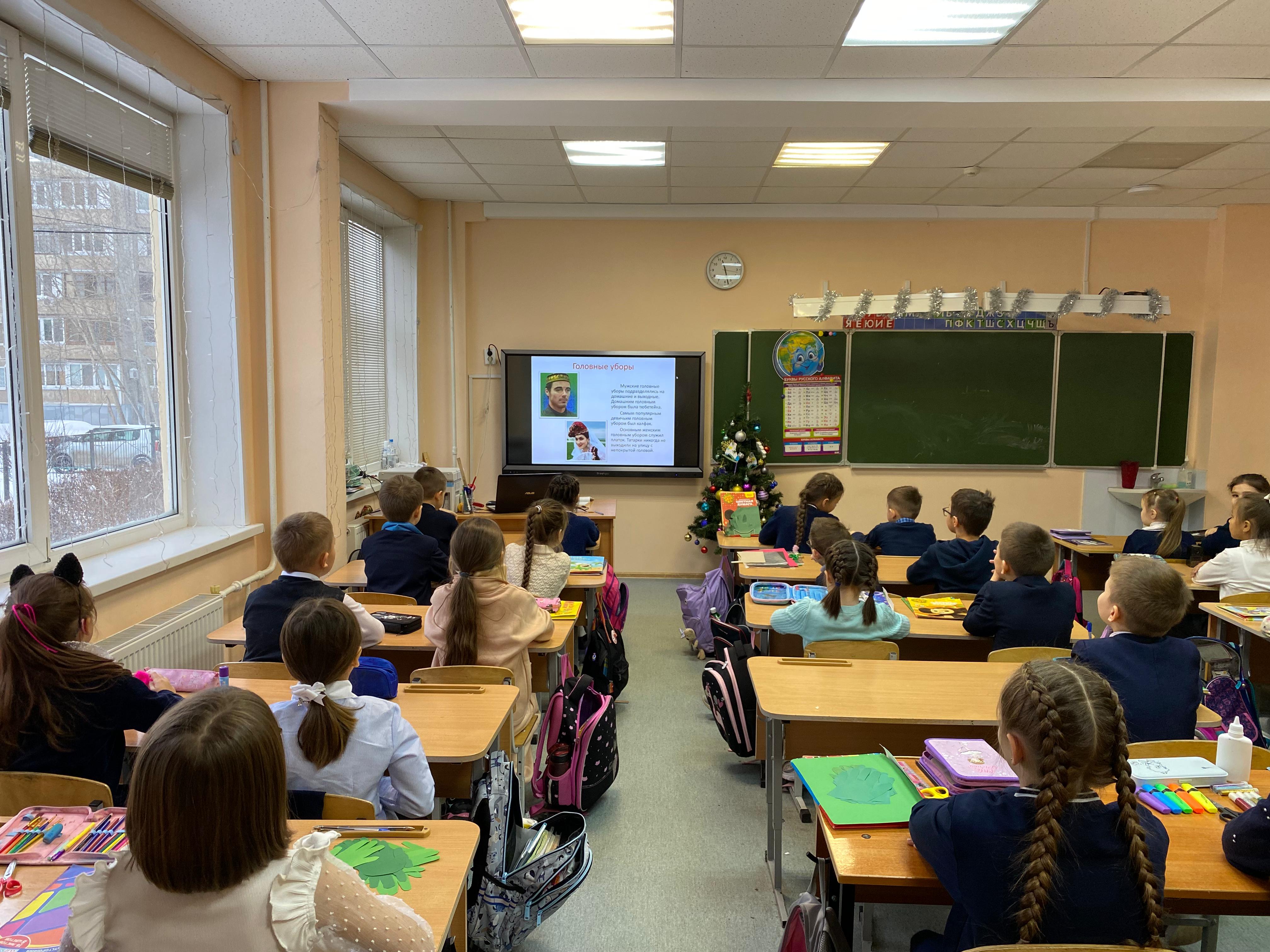 20 декабря 2023 г. в МАОУ "Татарская гимназия №84" ГО г. Уфа советник директора гимназии по воспитанию и взаимодействию с детскими общественными объединениями, студентка группы ПОТЯ-АНЯ-51-19 ИФОМК Шаригина Регина Рауфовна в рамках работы с психолого-педагогическими классами гимназии ознакомила учащихся с историей татарского национального костюма. Во время демонстрации костюмов у ребят была возможность примерить костюм на себе. А учащиеся начальных классов в живую демонстрировали образцы национальных костюмов.