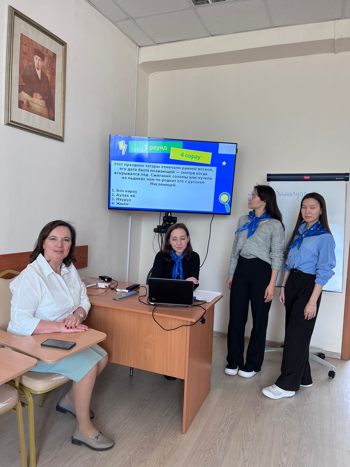 Вторая часть встречи прошла на факультетах и институтах. Абитуриенты направления подготовки «Педагогическое образование» направленность «Родной (татарский) язык и литература. Английский язык» со студентами 2 курса участвовали в квизе по истории и культуре татарского народа. И. о. зав. кафедрой татарского языка и литературы Нурия Халиуллина подробно ответила на вопросы школьников и родителей, рассказала об условиях, которые предоставляет вуз для жизни и учебы, какая поддержка ждет студентов, увлеченных наукой, творчеством и спортом. Отрадно было увидеть ребят – участников конференций, конкурсов, олимпиад, организованных кафедрой. В этот день посетили наш университет и представители психолого-педагогических классов – учителя и обучающиеся 9, 11 классов Татарской гимназии № 65 им. Гази Загитова ГО г. Уфа и Татарской гимназии № 84 ГО г. Уфа.