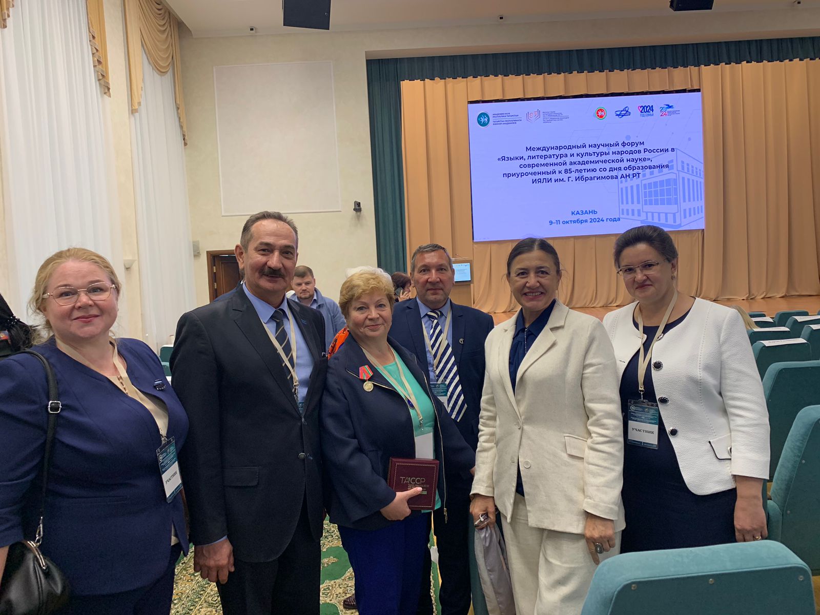 9-10 октября 2024 года в Академии наук Республики Татарстан состоялись мероприятия, посвященные 85-летию Института языка, литературы и искусства им. Г. Ибрагимова АН РТ – основного научного учреждения России и мира по татарской филологии и искусству. В рамках юбилея научного учреждения состоялся Международный научный форум «Языки, литературы и культуры народов России в современной академической науке», где были запланировано проведение нескольких мероприятий: научно-практической конференции «Национальные языки и межъязыковые процессы в современном мире», научно-практического семинара «Татароведение в ситуации смены научных парадигм: теория, методология, практика», ежегодной молодежной научной школы «Татар гыйлеме» – «Татарская наука» и научно-практического семинара «Традиционное зодчество как фактор сохранения национальной идентичности». В форуме приняли участие более 200 исследователей, среди которых – ученые из Азербайджана, Казахстана, Кыргызстана и городов России – Москва, С.-Петербург, Йошкар-Ола, Чебоксары, Ижевск, Уфа, Стерлитамак и др.