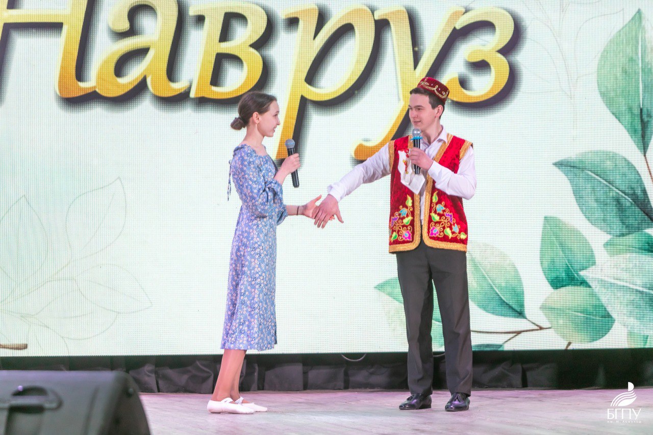 В день весеннего равноденствия многие народы отмечают праздник Навруз, символизирующий обновление и гармонию человека с природой, согласие и взаимопонимание в семье и обществе. В Акмуллинском университете учатся более 800 иностранных студентов из 21 страны мира. И праздник Навруз ежегодно объединяет тех, кто чтит свои традиции и ценит дружбу. Студенты 1 курса направления Педагогическое образование направленность (профиль) «Родной (татарский) язык, литература и английский язык» участвовали в большой концертной программе. Они представили татарский танец «Су юлы».
