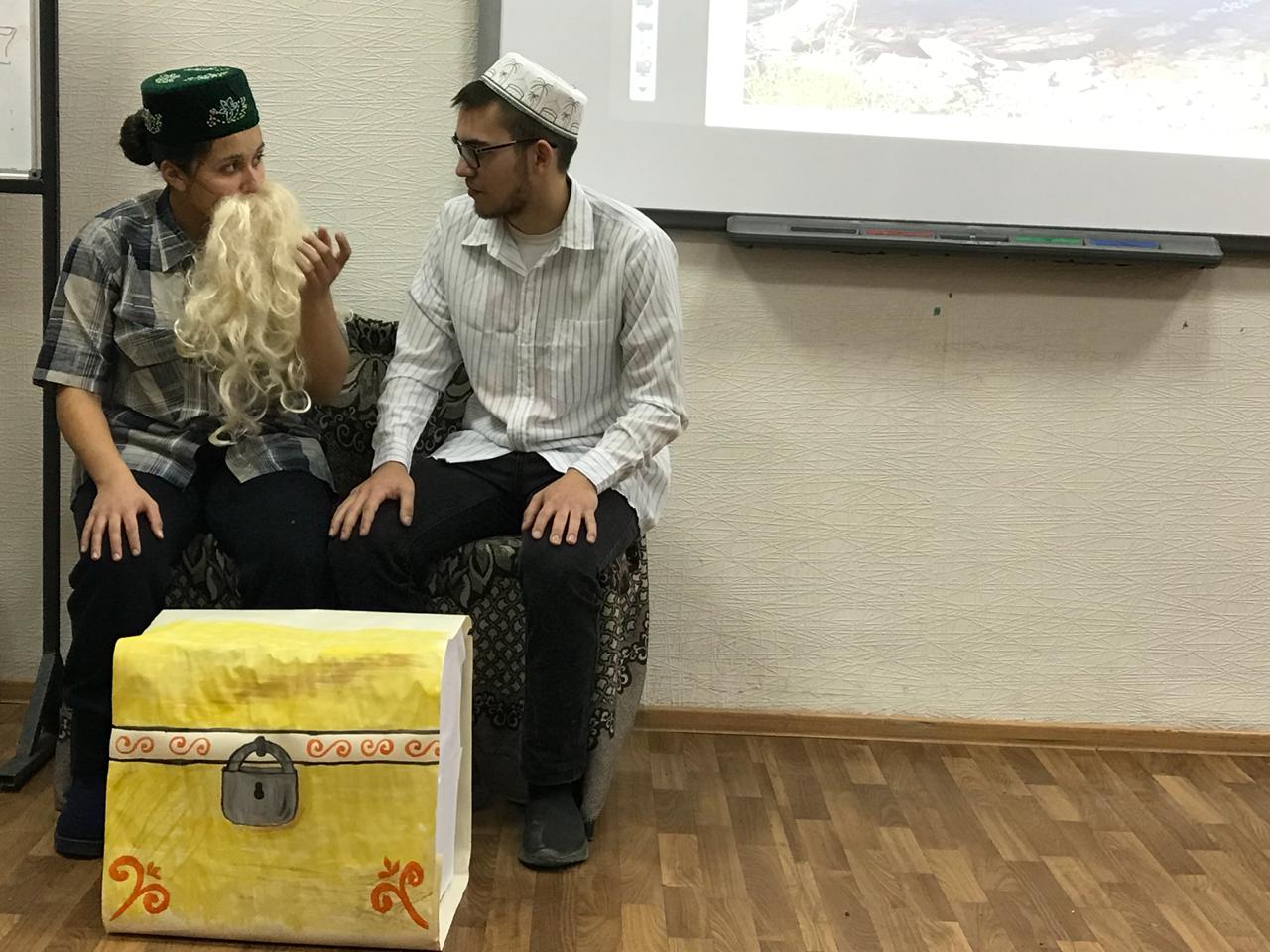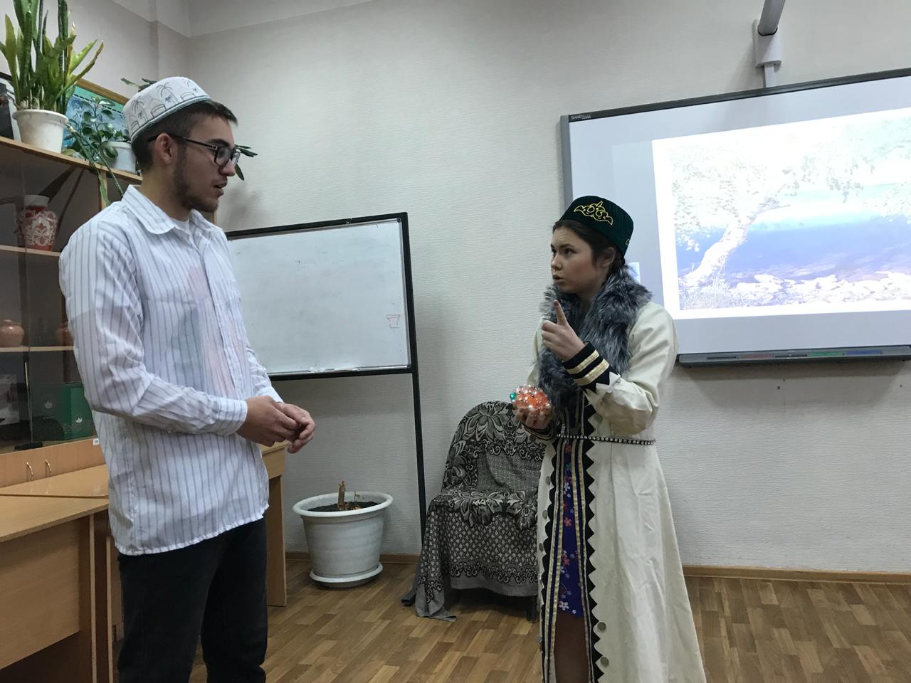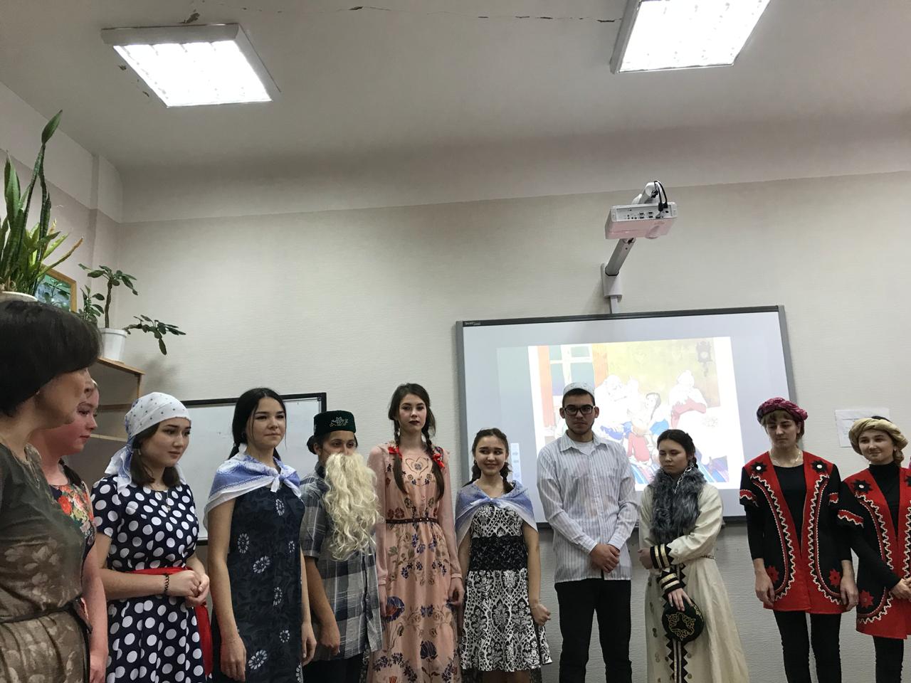 27 ноября студенты первого курса группы ПОТЯВ-105-18 ИФОМК успешно сдали контрольную точку по дисциплине «Татарское устное народное творчество» (преподаватель – Н.У.Халиуллина). Каждым студентом в течение семестра был собран богатый и интересный материал по жанрам татарского фольклора. Большинство из них были собраны в сельской местности – на малой родине студентов. Используя оригинальный собранный материал, они поставили сценку. За основу была взята татарская народная сказка «Зирәк карт» («Смекалистый дед»).