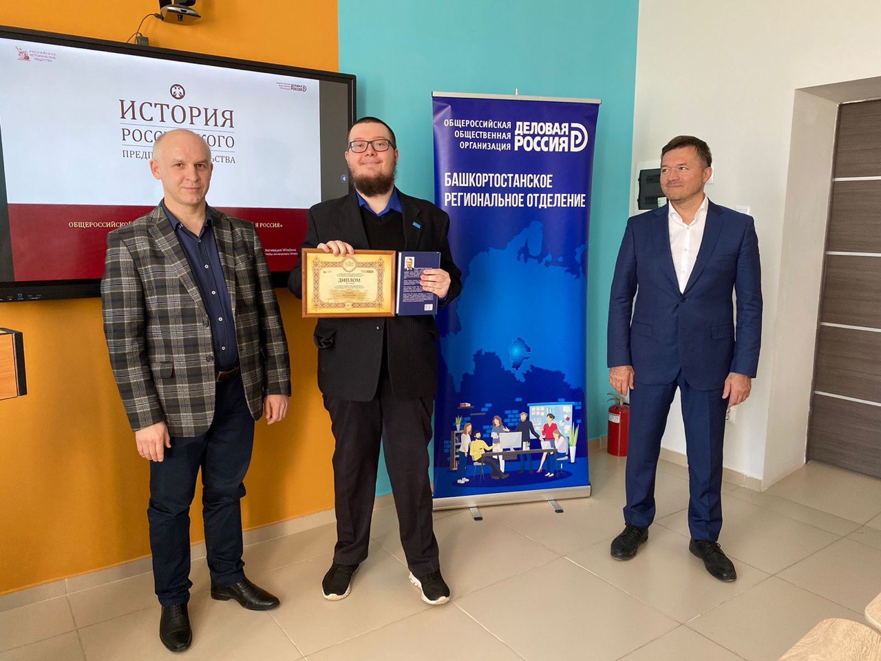 В торжественной обстановке  Айдар Зубаиров и Айдар Галин вручили призерам регионального этапа Олимпиады почетные дипломы и ценные призы, а также благодарственные письма членам оргкомитета и преподавателям вузов за активное участие в организации и проведении регионального этапа Всероссийской Олимпиады по истории российского предпринимательства в Республике Башкортостан. От кафедры Отечественной истории в Оргкомитет Олимпиады вошли И.Н. Баишев и А.И. Кортунов. Все студенты и аспиранты, принявшие участие в Олимпиаде, получили сертификаты участника.