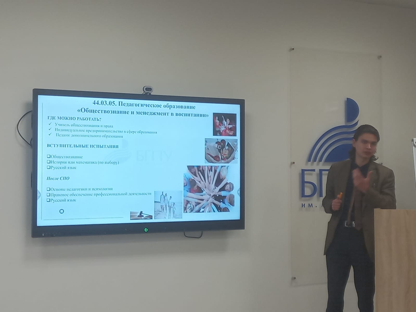В рамках профориентационной деятельности заведующий кафедры отечественной и всеобщей истории Рустам Алмаев и аспирант кафедры Тимур Янборисов познакомили десятиклассников с профилями, реализуемыми в Институте исторического, правового и социально-гуманитарного образования, процессе обучения, порядке учета индивидуальных достижений, возможностях участия в спортивной и общественной жизни института.