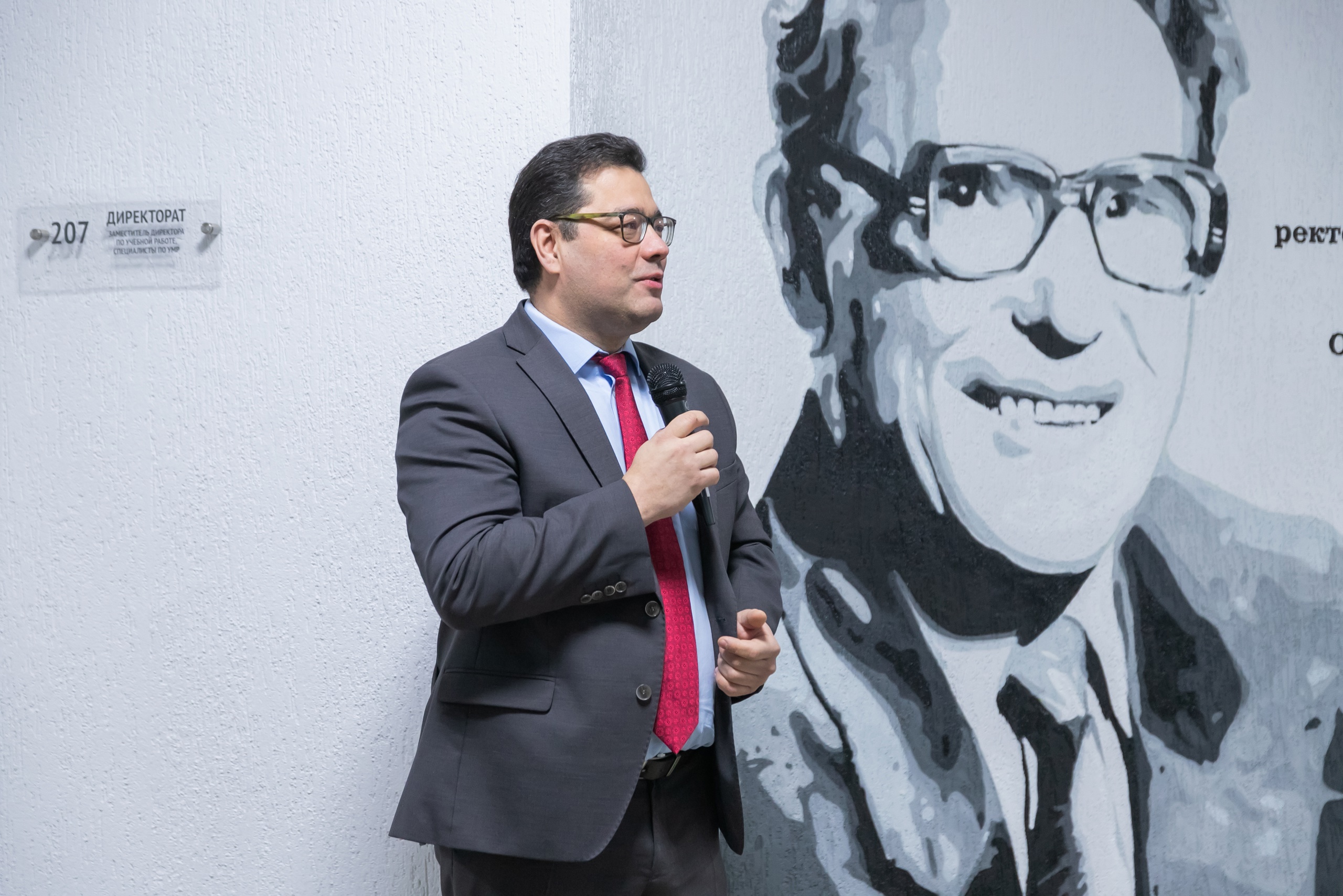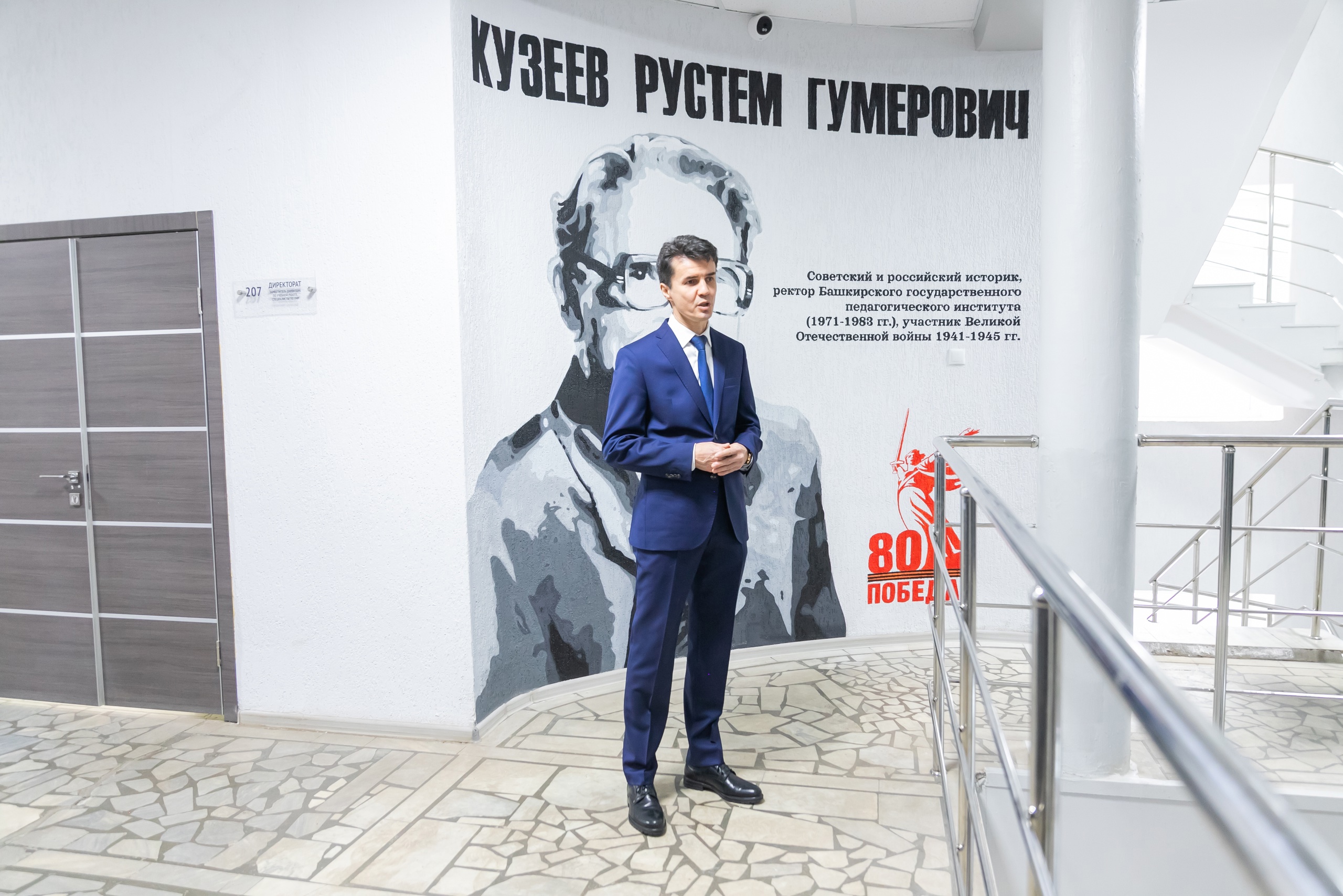Мурал  – произведение настенной живописи большого размера. Портрет Р.Г. Кузеева в стиле поп-арт выполнил художник Максим Абакумов. Он отметил, что работа над портретом велась по ночам, чтобы не мешать учебным занятиям.