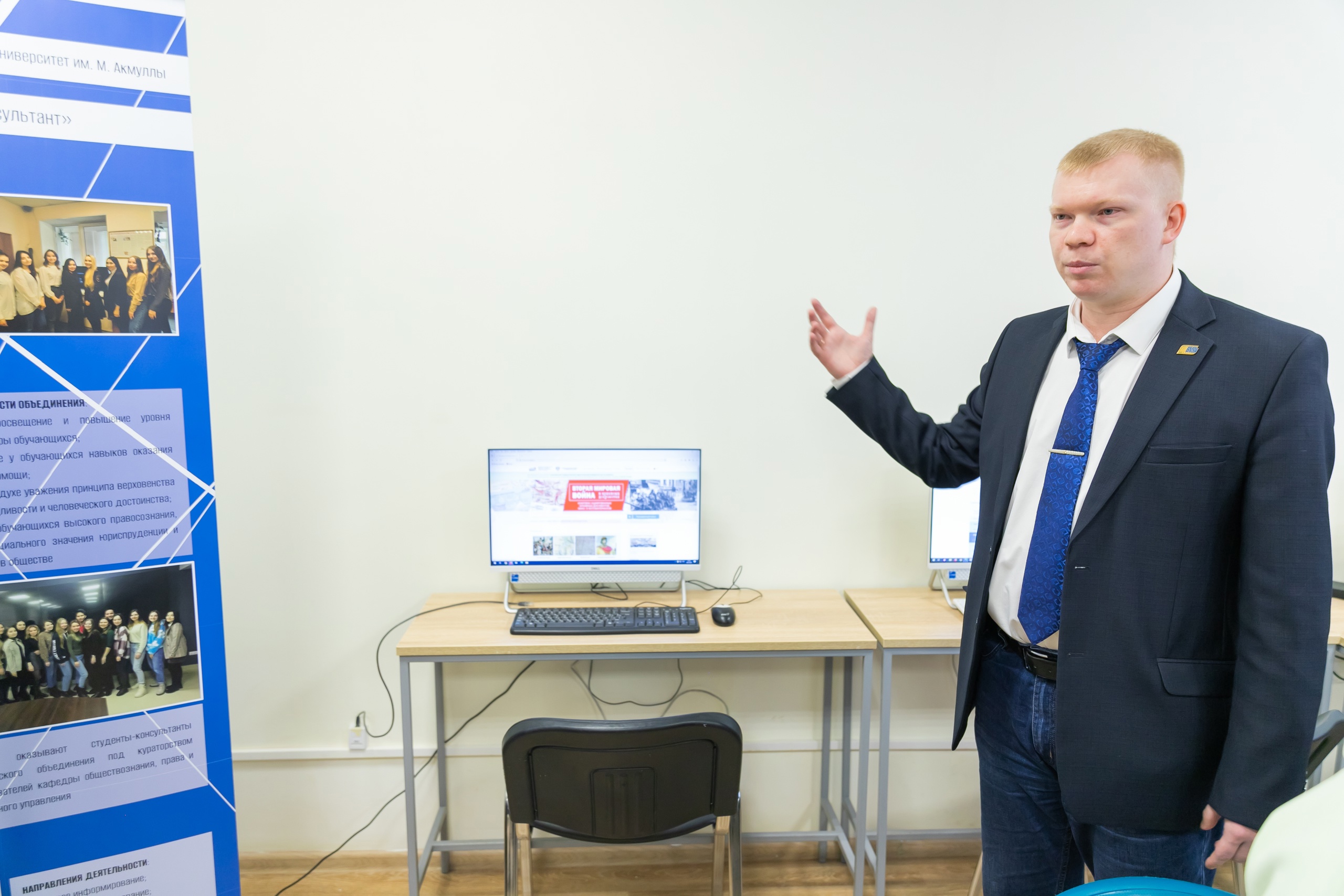 Гости посетили обновленные аудитории Института, где познакомились с работой «Гуманитарного кванториума». Преподаватель кафедры отечественной и всеобщей истории Алексей Иванов показал, как работает онлайн-зал Президентской библиотеки им. Б.Н. Ельцина, которым активно пользуются студенты для подготовки к занятиям.