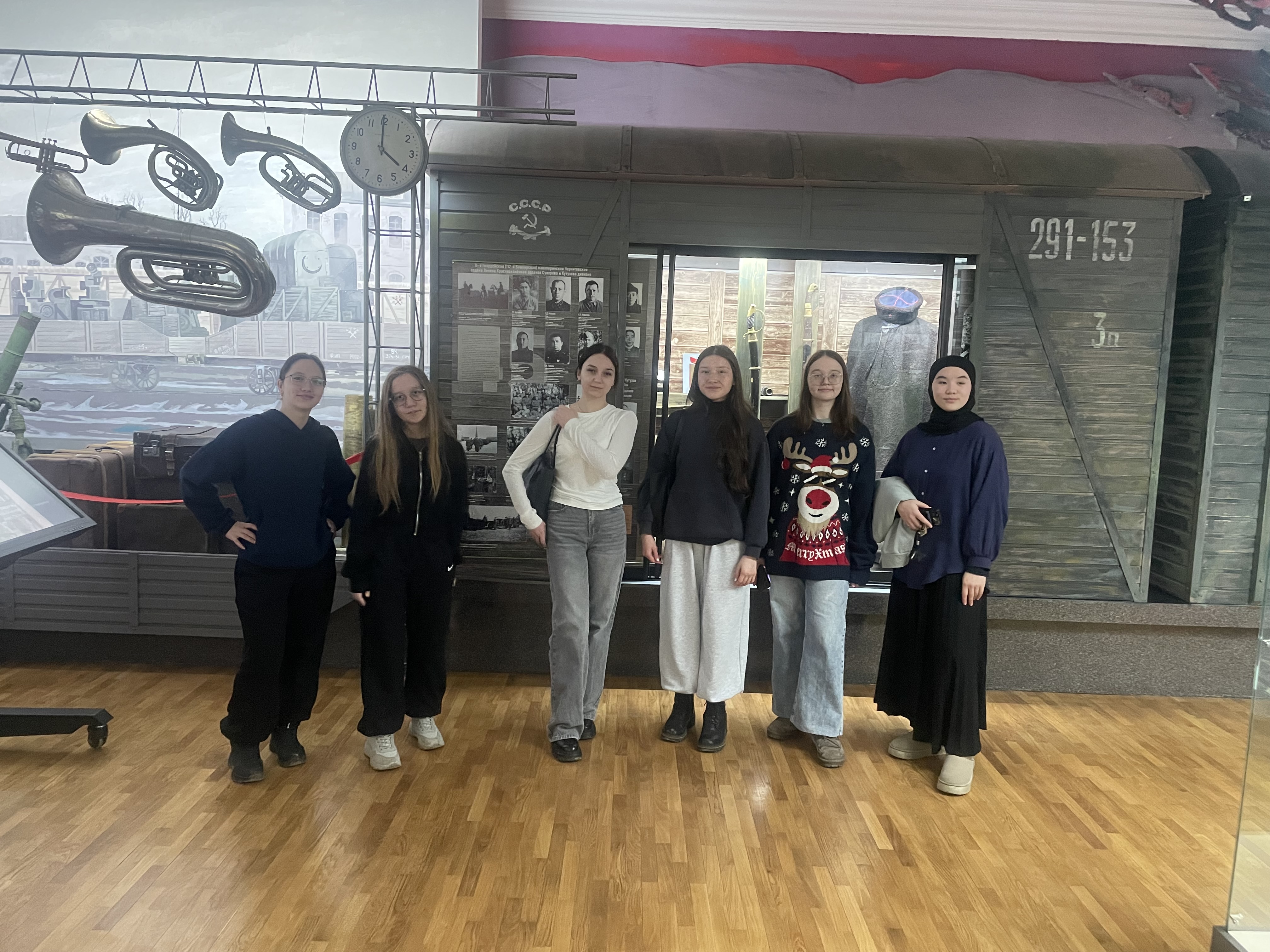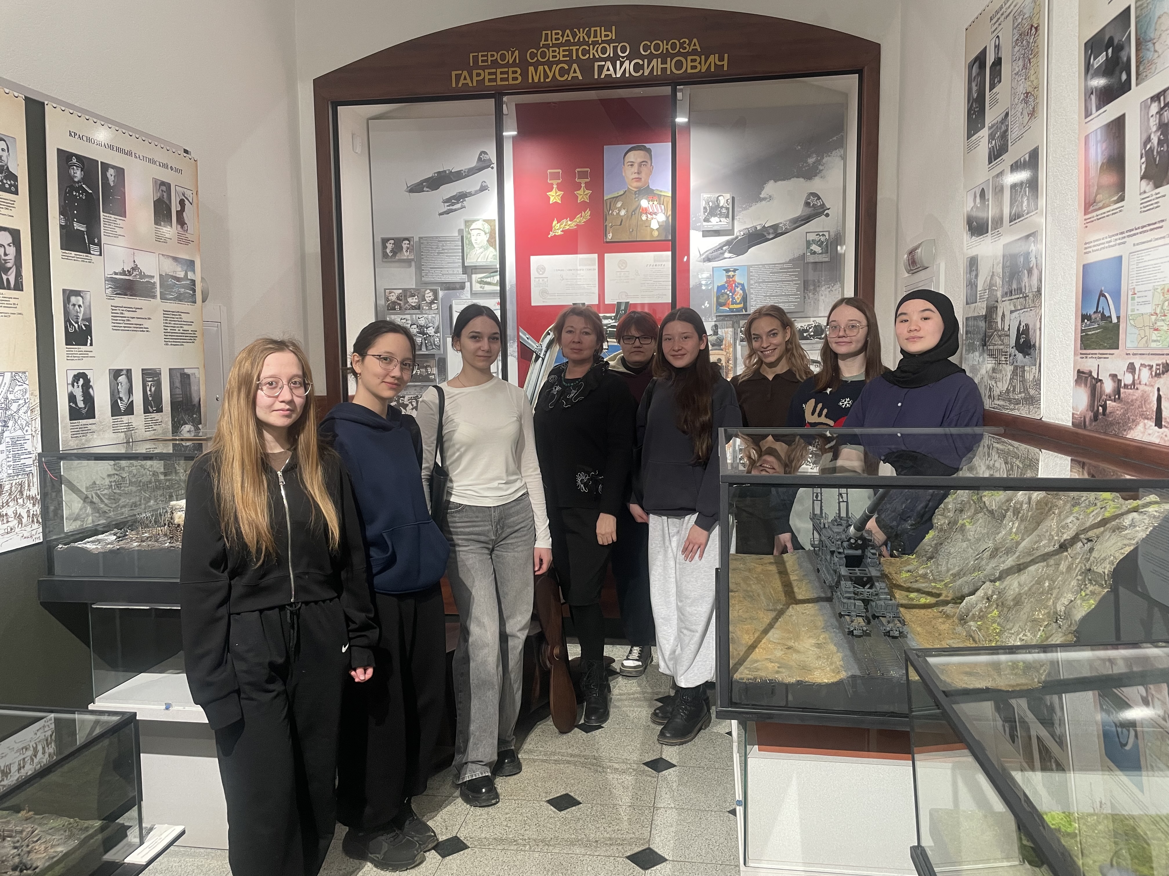 Завершается год 80-летия Великой Победы. Студенты 1 курса института физики, математики, цифровых и нанотехнологий, обучающиеся по направлению «Педагогическое образование», профиль «Математика»,  экспозиции Национального музея Республики Башкортостан, посвященные военным событиям. Преподаватель кафедры отечественной и всеобщей истории доцент А. И. Чигрина провела беседу – экскурсию по этому героическому периоду, рассказав о подвигах наших земляков: генерала Минигали Шаймуратова, лётчика Мусы Гареева и других героев. Студенты познакомились с обновлённой экспозицией по истории Великой Отечественной войны, с экспонатами, повествующими  боевых и трудовых подвигах жителей республики. В ходе беседы были проведены параллели с современными событиями, когда нашим соотечественникам приходится снова защищать страну от нацизма. Это показывает экспозиция, посвященная специальной военной операции и подвигам земляков – современников.