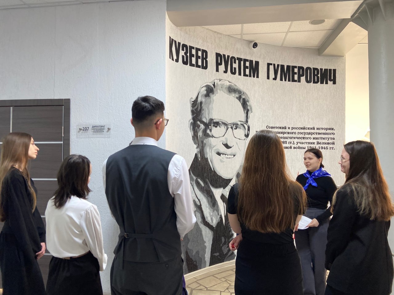 Преподаватели и студенты Института исторического, правового и социально-гуманитарного образования в течение четырёх дней принимали участников Акмуллинской олимпиады по четырём направлениям. Члены студенческого объединения «Клуб экскурсоводов» все эти дни проводили для школьников и студентов колледжей обзорные экскурсии по корпусам ИИПСГО. В рамках экскурсий ребятам рассказали об основных направлениях деятельности института, познакомили с работой Центра компетенций от Евразийского научно-образовательного центра. Особое внимание экскурсоводы Вероника Гуськова, Карина Файзуллина, Регина Хамзина, Елизавета Ротарь и Радмира Валиуллина уделили вкладу Рустема Гумеровича Кузеева в развитие Башкирского государственного педагогического университета им. М.Акмуллы. Школьникам показали лабораторию интерактивной истории и другие лаборатории института. Также ребят познакомили с историей корпусов, с улицей Большой Казанской, нынешней улицей Октябрьской революции, на которой расположен институт.  Участники Акмуллинской олимпиады с большим интересом восприняли информацию наших студентов -экскурсоводов.