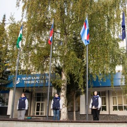 Студенты факультета психологии подняли флаги на площади перед БГПУ им. М. Акмуллы