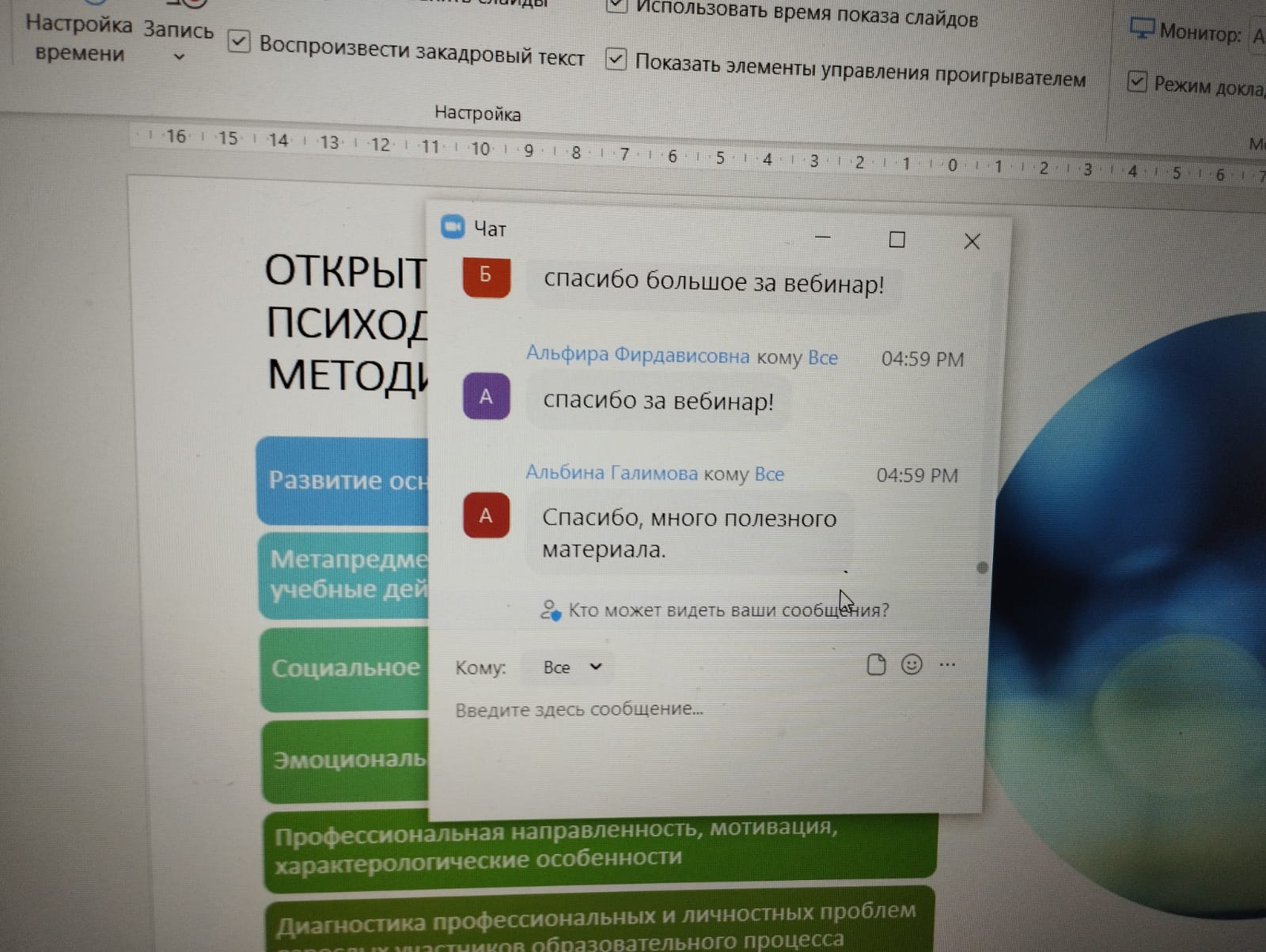 21 октября 2022 г. Лилия Рашитовна Халикова пригласила родителей на вебинар, посвященный злободневной теме «Профилактика суицидальных тенденций среди несовершеннолетних: что нужно знать родителям». В рамках обучающего мероприятия были рассмотрены факторы суицидальных тенденций среди несовершеннолетних, ранние признаки распознавания; проанализированы антисуицидальные факторы. Родителям были даны рекомендации по ранней профилактике суицидальных проявлений среди детей и подростков.