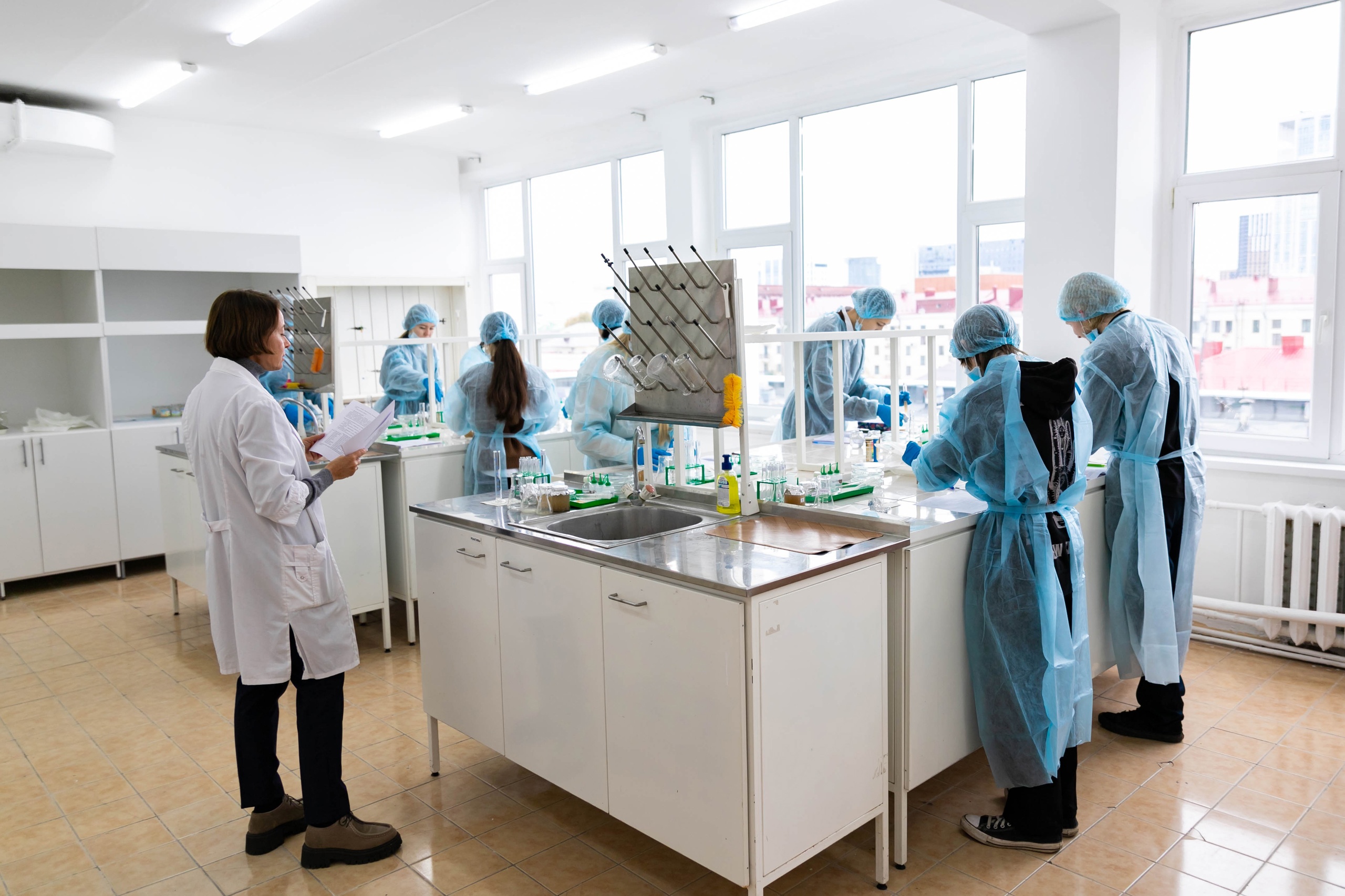 На кафедре биоэкологии и биологического образования ребятам рассказали о профессии эколога. Ребята вместе с преподавателями кафедры провели анализ различных показателей качества воды: органолептических (цветность, запах, мутность) и гидрохимических (водородный показатель рН, сульфаты, хлориды, общая жесткость), а также сделали оценку качества воды с помощью биотестирования, используя в качестве тест-объектов ветвистоусых рачков рода Дафния и одноклеточную зеленую  водоросль Chlorella vulgaris. Учащиеся успешно справились с поставленными задачами, провели эксперименты, сравнив качество водопроводной воды и проб из озера Волчок, реки Сутолока, сделали соответствующие выводы.