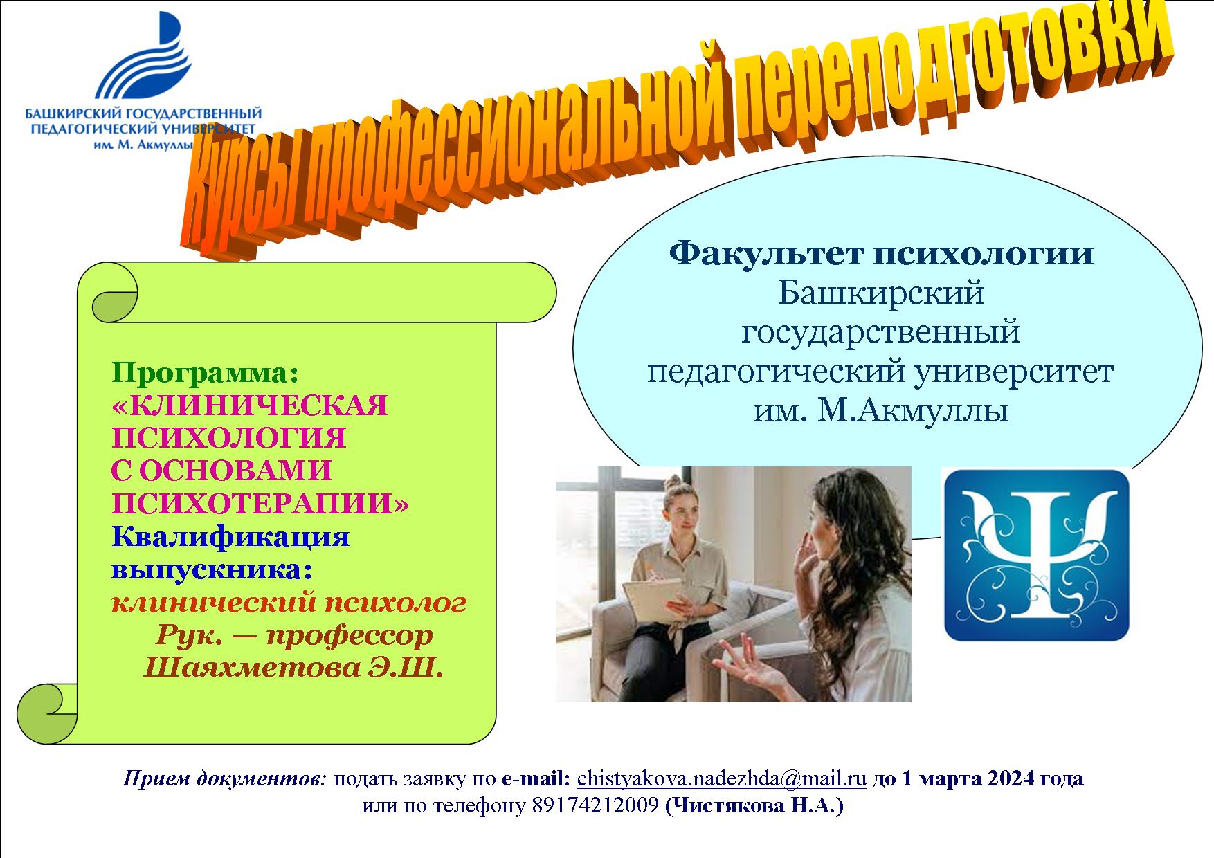 ПРОФЕССИОНАЛЬНАЯ ПЕРЕПОДГОТОВКА «КЛИНИЧЕСКАЯ ПСИХОЛОГИЯ С ОСНОВАМИ ПСИХОТЕРАПИИ»
