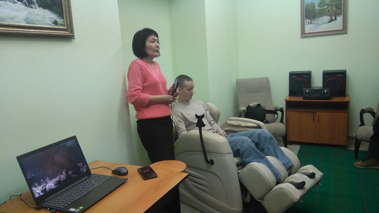 В кабинете психоэмоциональной разгрузки выпускники побывали в особом образе организованной окружающей среде, которая влияет на улучшение эмоционального состояния, снижение тревожности и агрессивности, активизацию мозговой деятельности.