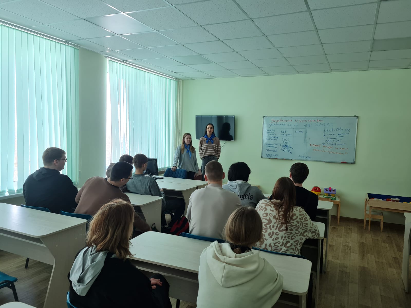 В кабинете детской психологии выпускников познакомили с методами работы по коррекции психоэмоционального состояния детей, их развитию и обучению.