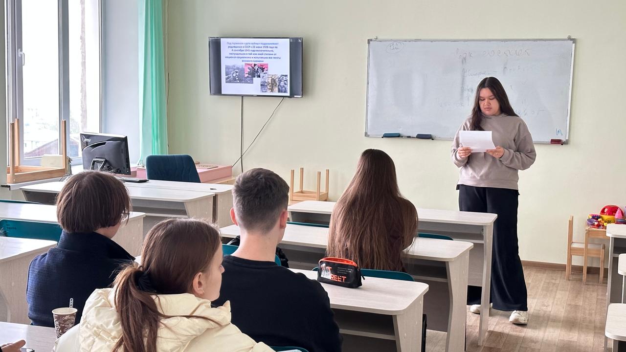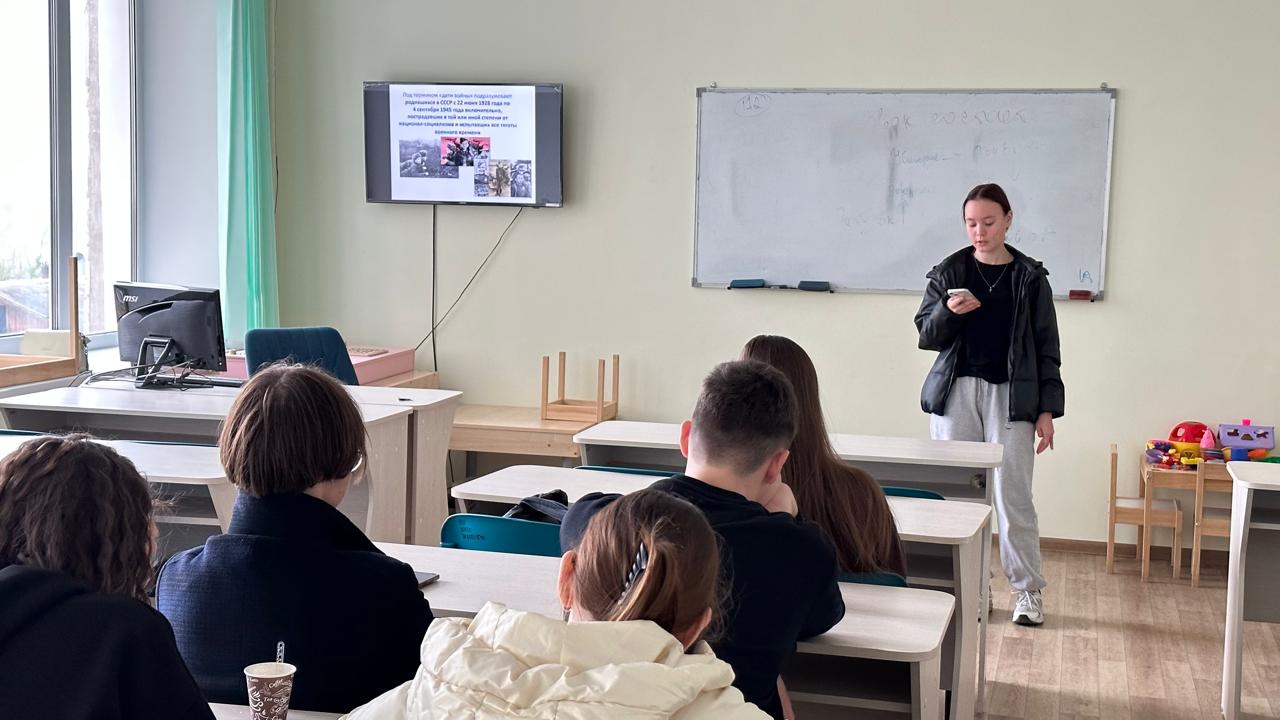 6 мая 2024 года в преддверии празднования дня великой победы со студентами 1 курса направления «Психология в управлении и экономике» и специальности «Педагогика и психология девиантного» поведения прошла патриотическая беседа "Дети войны: история героев".  Перед первокурсниками выступили старшие товарищи – студенты 3 курса Альбина Климова и Лиана Мухаметгареева. Девушки рассказали о детях-героях и их великих подвигах. Первокурсники приняли эстафету у своих старших товарищей - подготовили и представили аудитории небольшие рассказы о детях-героях ВОВ. Было представлено много интересных фактов из жизни следующих детей-героев: