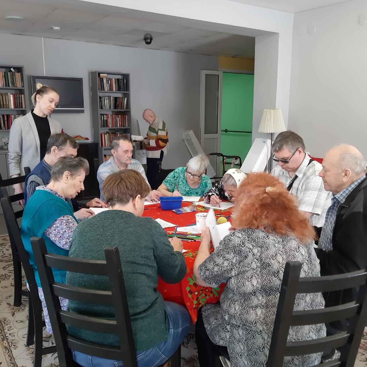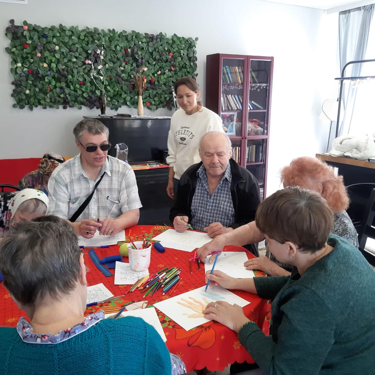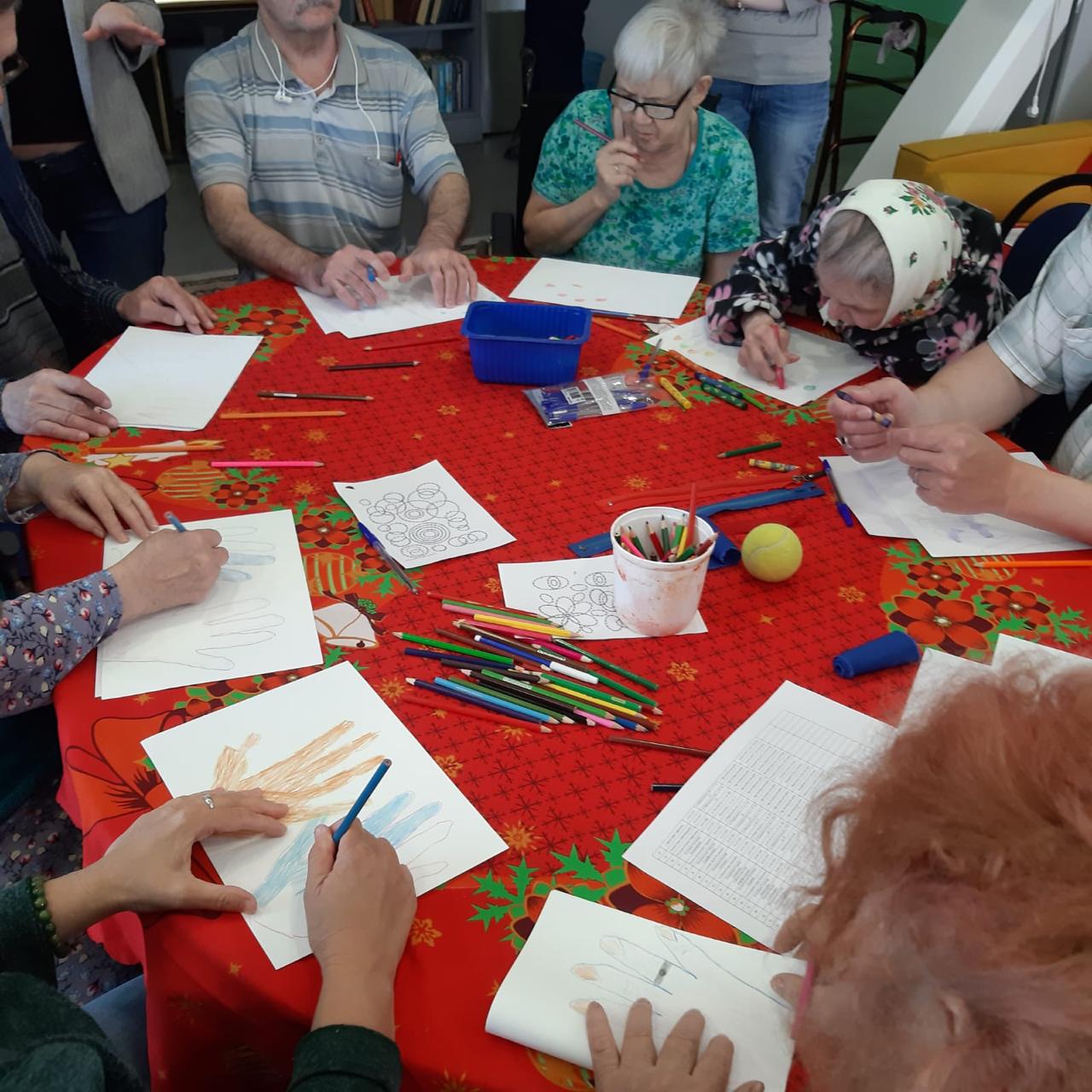 Далее, для коррекции эмоционального состояния, провели арт-терапевтическое занятие. Все с удовольствием включились в творческий процесс. Общение было очень теплым, по-домашнему уютным. Пациенты центра ушли с занятия с приподнятым настроением.