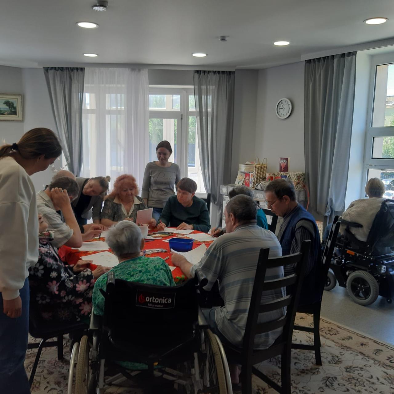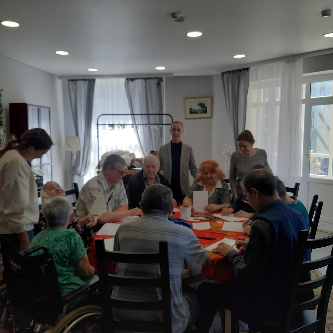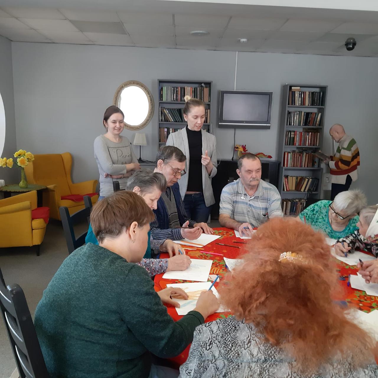 Далее, для коррекции эмоционального состояния, провели арт-терапевтическое занятие. Все с удовольствием включились в творческий процесс. Общение было очень теплым, по-домашнему уютным. Пациенты центра ушли с занятия с приподнятым настроением.