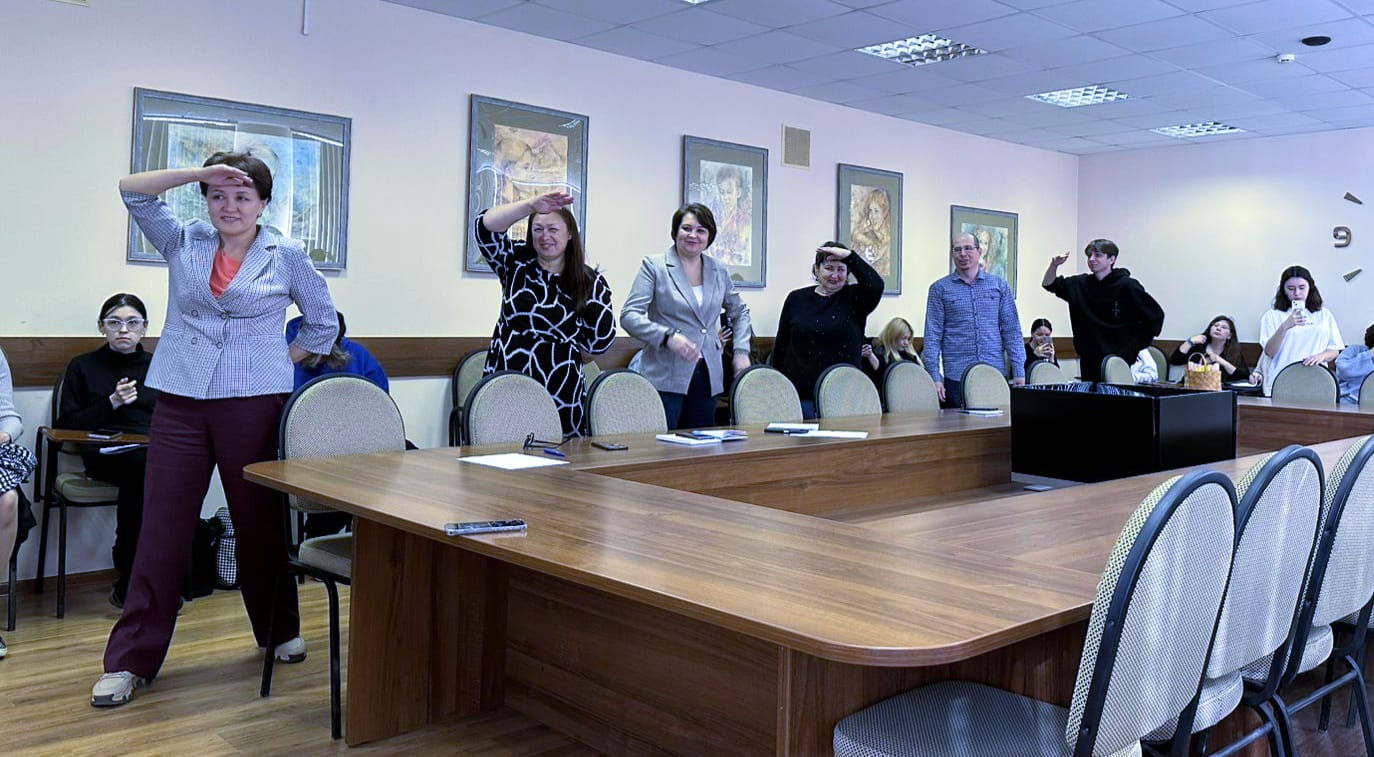 Занятие началось с утренней гимнастики для преподавателей и сотрудников под руководством Даниса Бакирова. «Новоиспеченные студенты» участвовали в блиц-опросе, выполняли интересные задания, давали интервью, составляли словарь самых популярных выражений студентов.