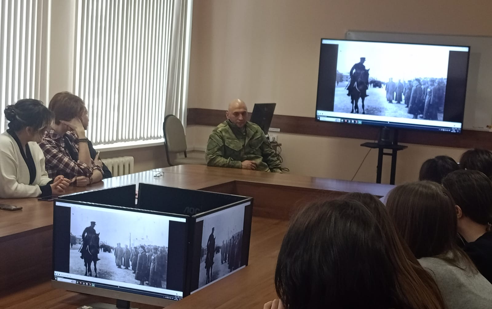 Гость мероприятия Илья Красных рассказал о своей военной службе в рамках военной операции в Сирии и СВО. Представленный им видеофильм позволил студентам познакомиться с характером и напряженностью военной службы в отряде специального назначения им. генерала-майора М.Шаймуратова.