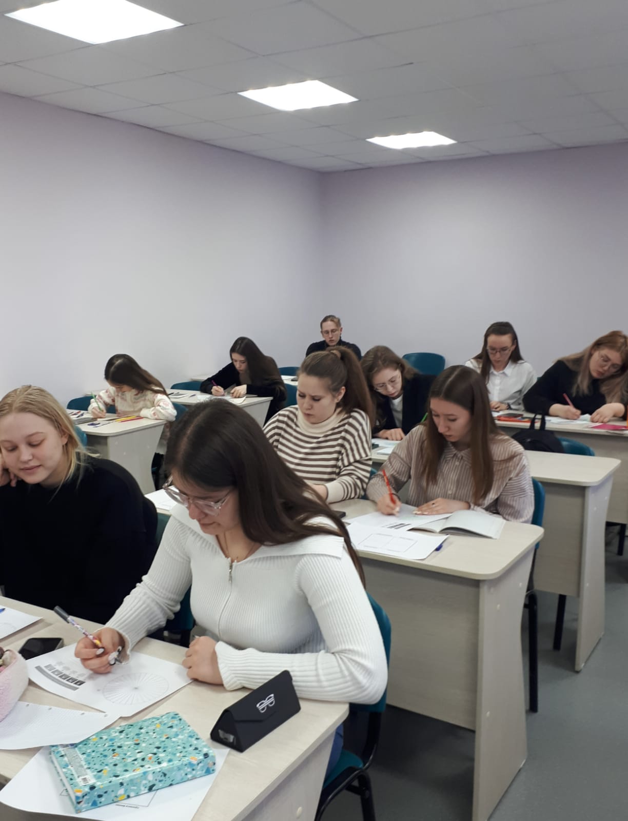 Аделина начала тренинг с простых, но очень важных вопросов: «Что для вас время?», «Что мешает вашей продуктивности?». Эти размышления сразу настроили студентов на серьезную работу. Она не просто давала информацию, а помогала осознать свои текущие проблемы с тайм-менеджментом.  Особенно запомнилось упражнение «Пирог времени», где на подготовленных шаблонах учащиеся визуализировали свой день, раскрашивая сегменты (сон, учеба, отдых и т. д.). Это упражнение наглядно показало, куда уходят часы и где можно найти резервы.