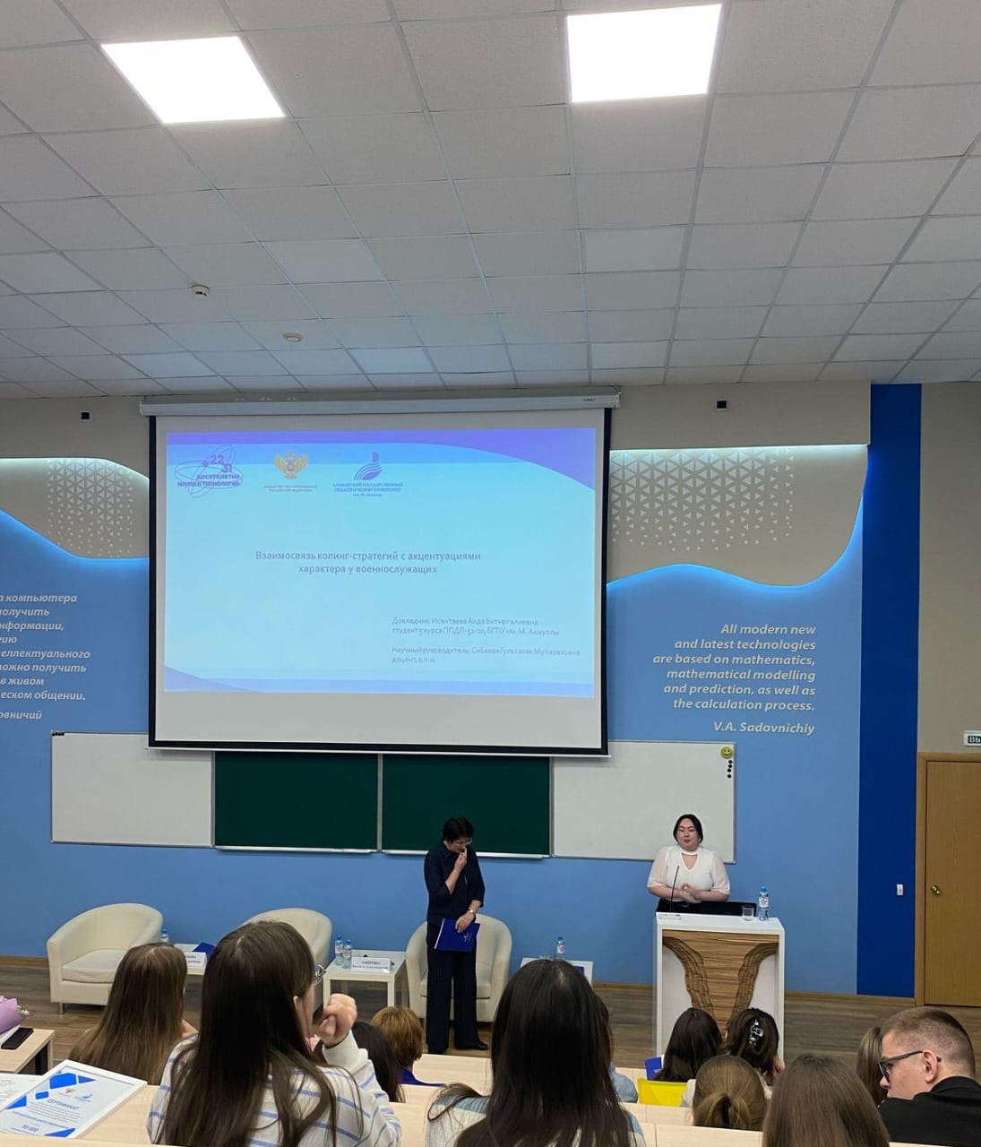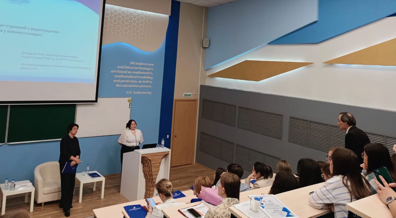 Факультет психологии представила Исентаева Аида Батыргареевна,  студентка 5 курса. Тема ее выступления «Взаимосвязь копинг-стратегий с акцентуациями  характера у военнослужащих». Она подробно рассказала о своем научном исследовании в этой области и поделилась дальнейшими планами.