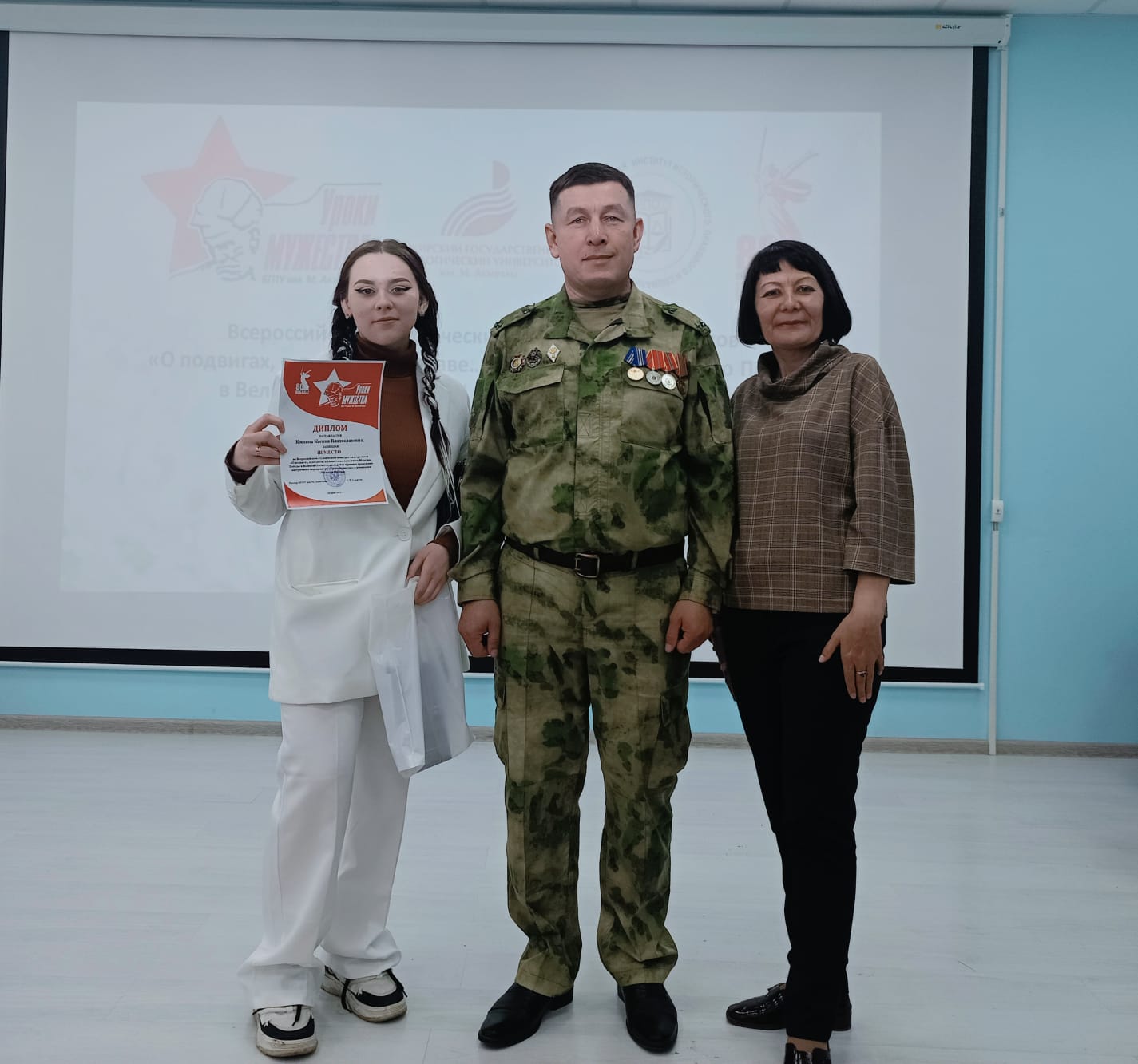 По этой номинации Всероссийского конкурса видеороликов «О доблести, о подвигах, о славе…», посвященного 80-летию Победы в Великой Отечественной войне в рамках проведения внеурочного мероприятия «Уроки мужества»,  студентка 1 курса профиля  «Психологическое консультирование и медиация в социальной сфере» Ксения Костина завоевала 3 место.