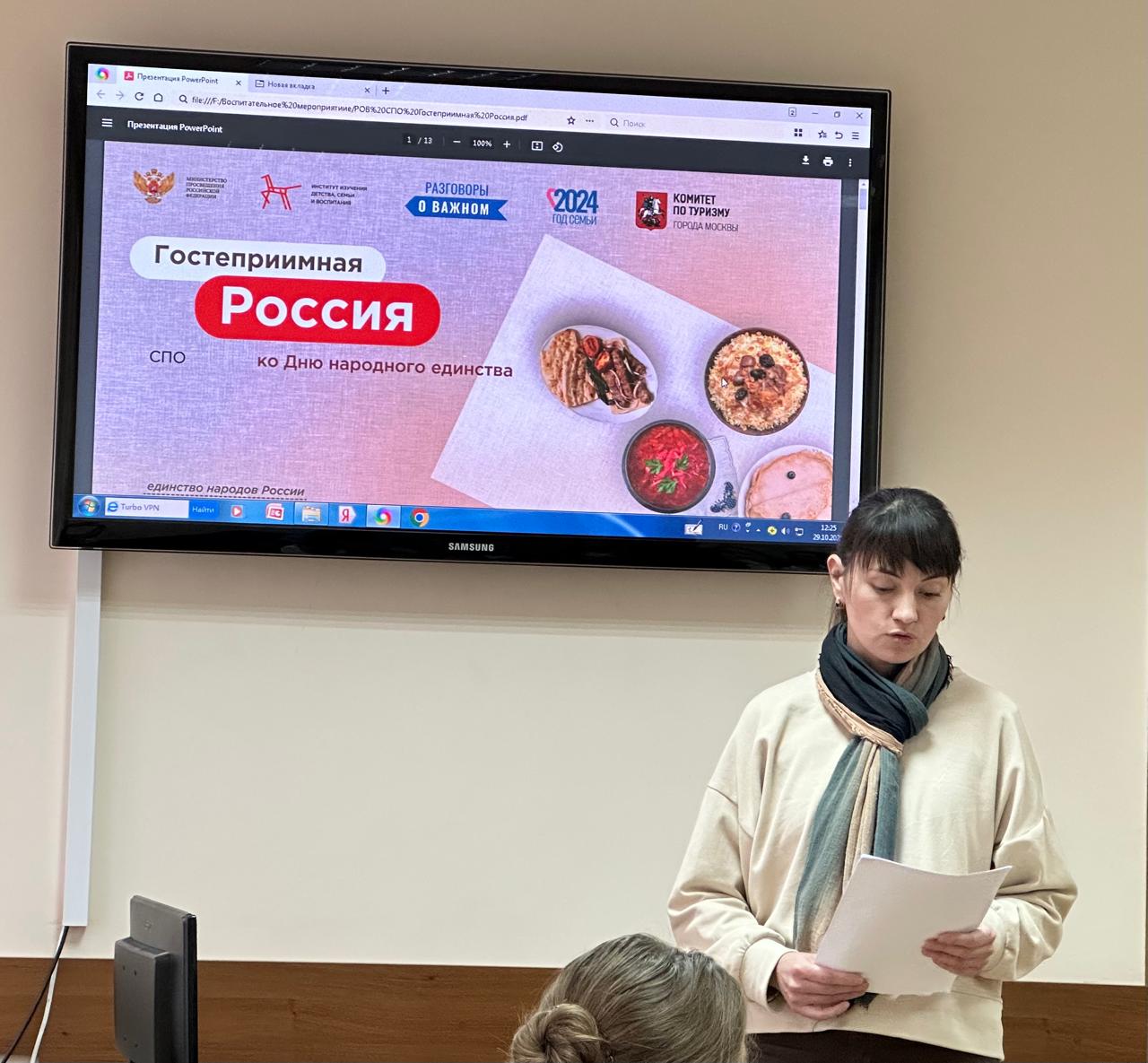 28 октября на факультете психологии состоялось очередное занятие из цикла «Разговоры о важном». Тема встречи – «Гостеприимная Россия» – была приурочена к приближающемуся Дню народного единства.