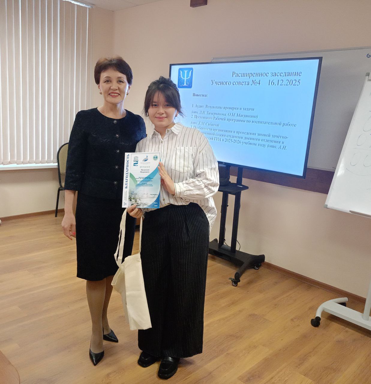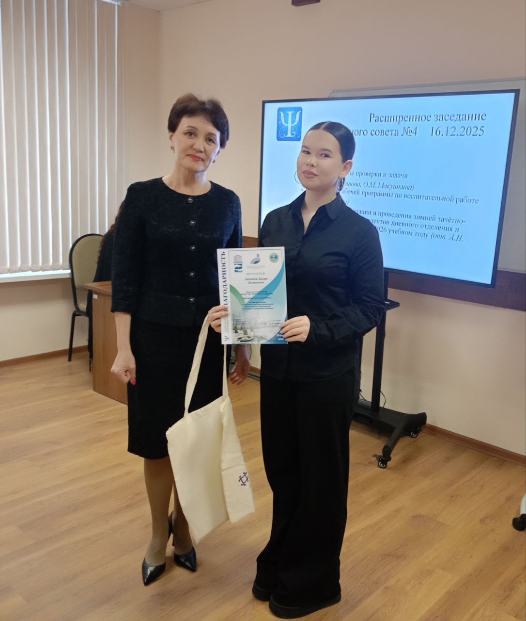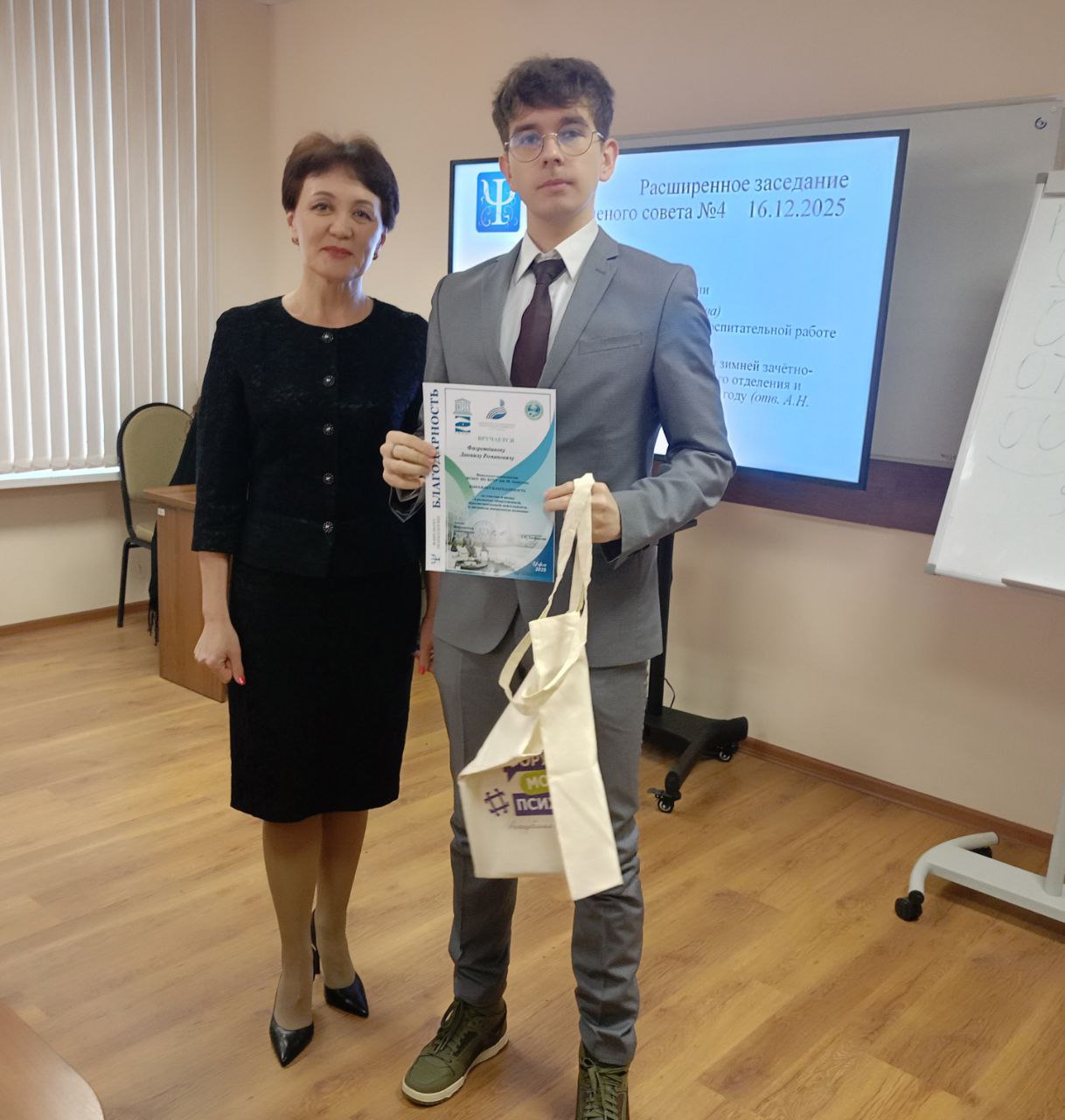 16 декабря в рамках расширенного Ученого совета факультета психологии прошла торжественная церемония награждения самых активных и инициативных студентов. Декан факультета Лилия Халикова лично вручила Благодарственные письма тем, кто не только успешно осваивает учебную программу, но и вносит неоценимый вклад в жизнь факультета, проявляя инициативу и энтузиазм.