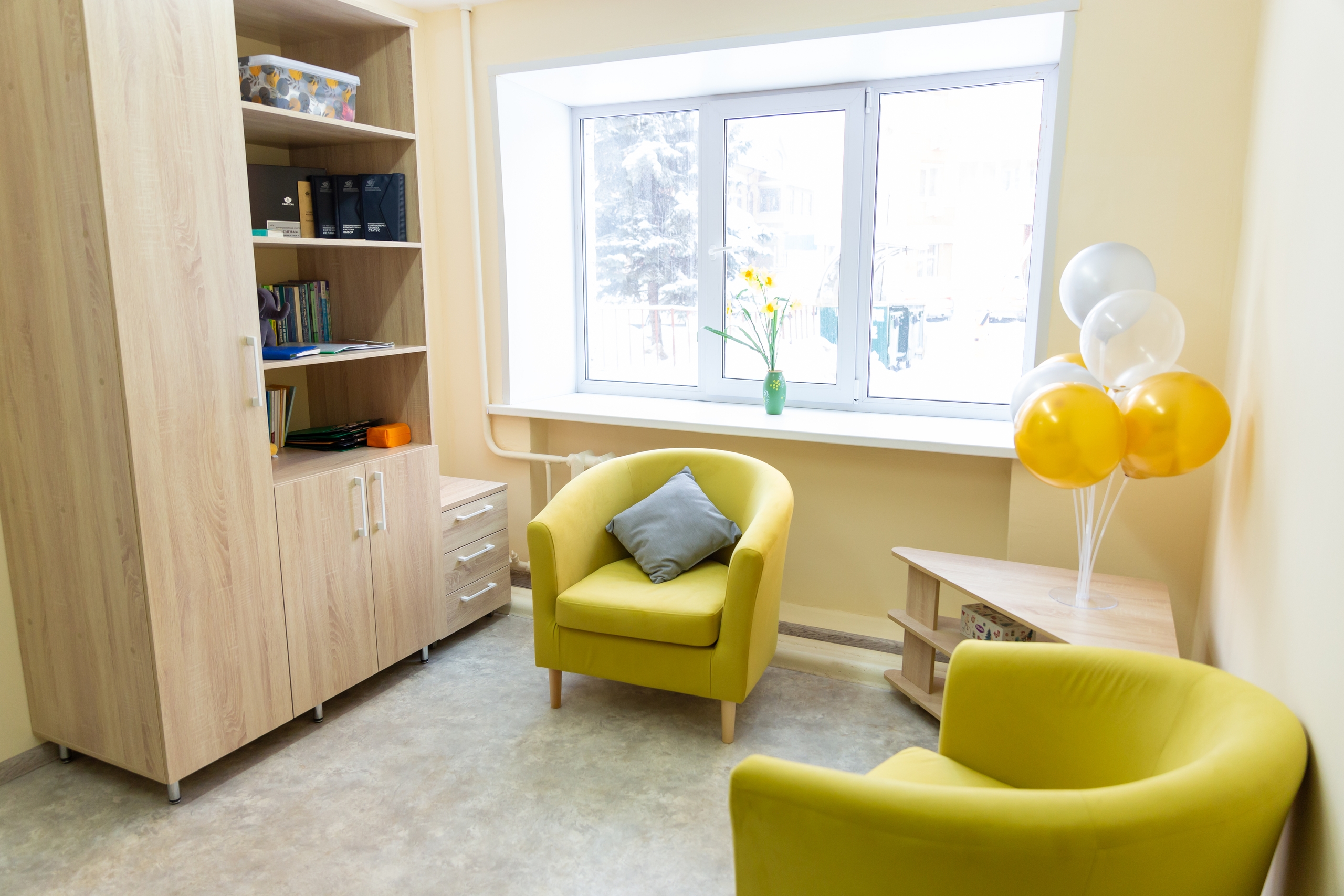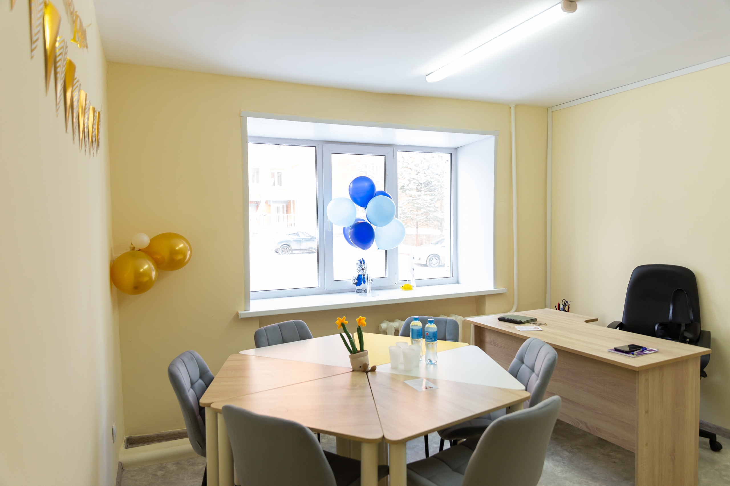В новом кабинете разместились две зоны: место для групповых тренингов и кабинет для индивидуальных консультаций.
