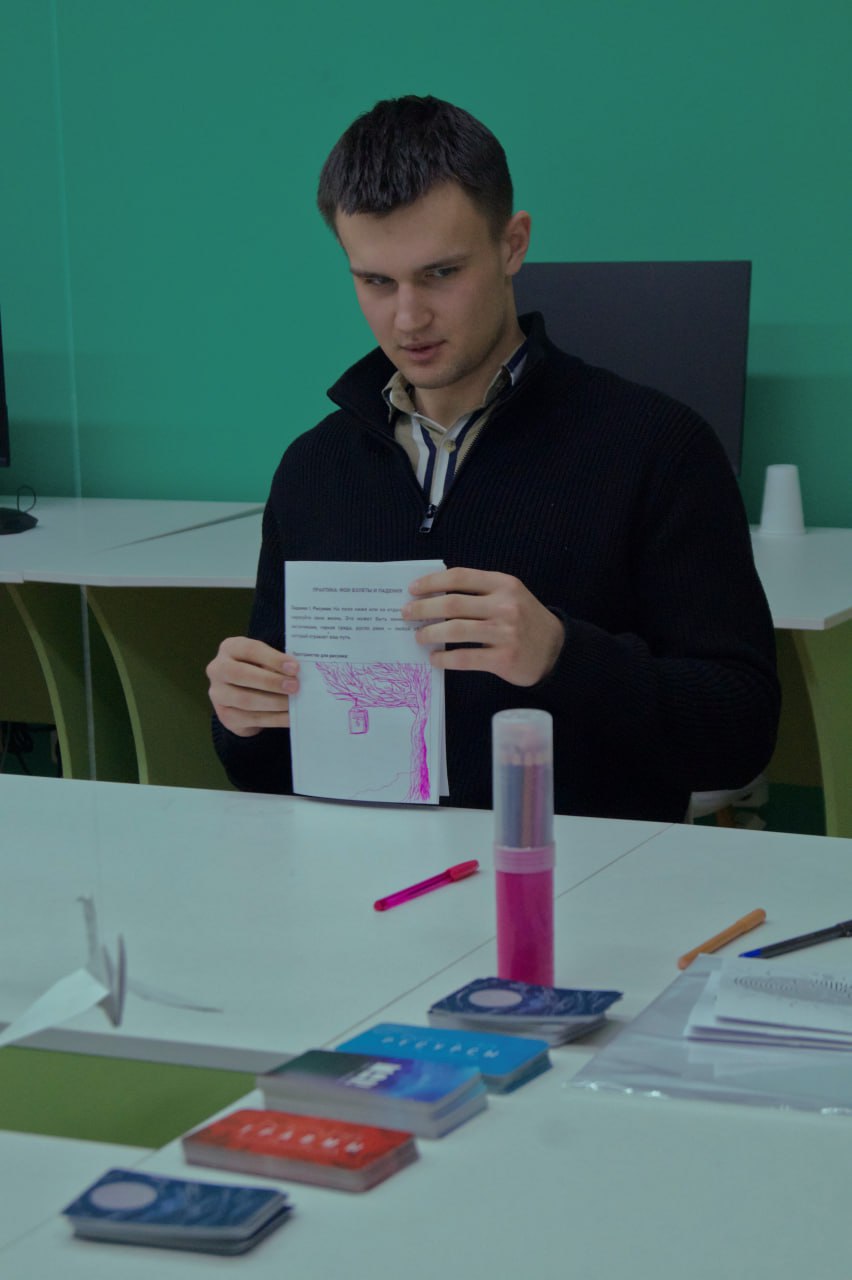 Практическая часть объединила метод «Взлетов и падений» Клауса Фопеля, глубокую встречу с «Внутренним ребенком» и интеграцию юнгианской «Тени». Участники учились превращать свои «недостатки» в скрытую силу и находить ресурс в пройденных испытаниях. Завершающим аккордом стала работа с метафорическими картами, которая помогла каждому обрести внутреннюю опору и прийти к важному выводу: целостность важнее идеальности, а личная ценность не требует доказательств.