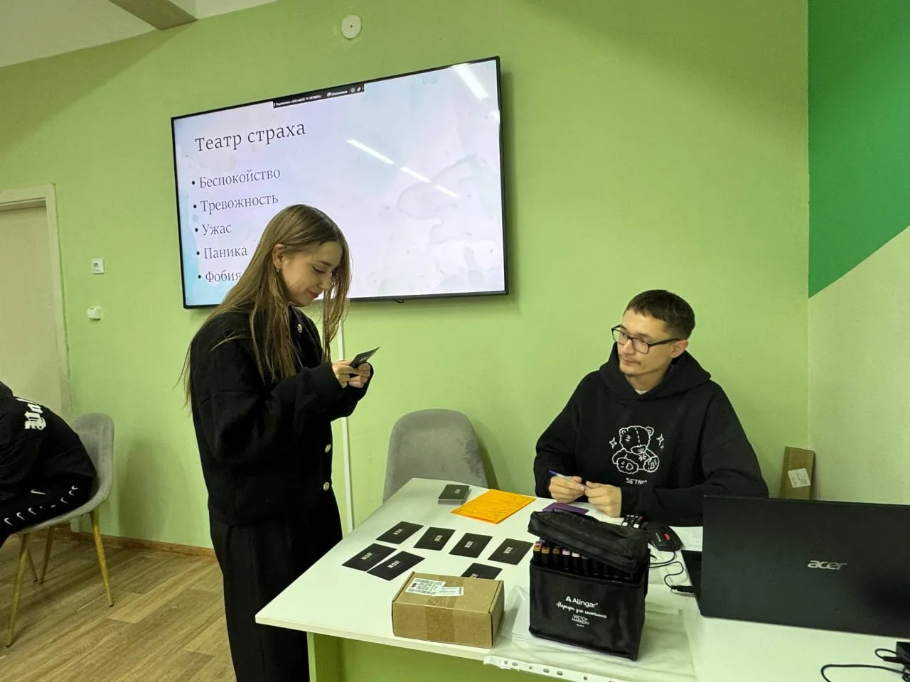 Тренинг начался с разбора понятия страх и погружения в теорию, где участники узнали что такое эмоции и чувства.