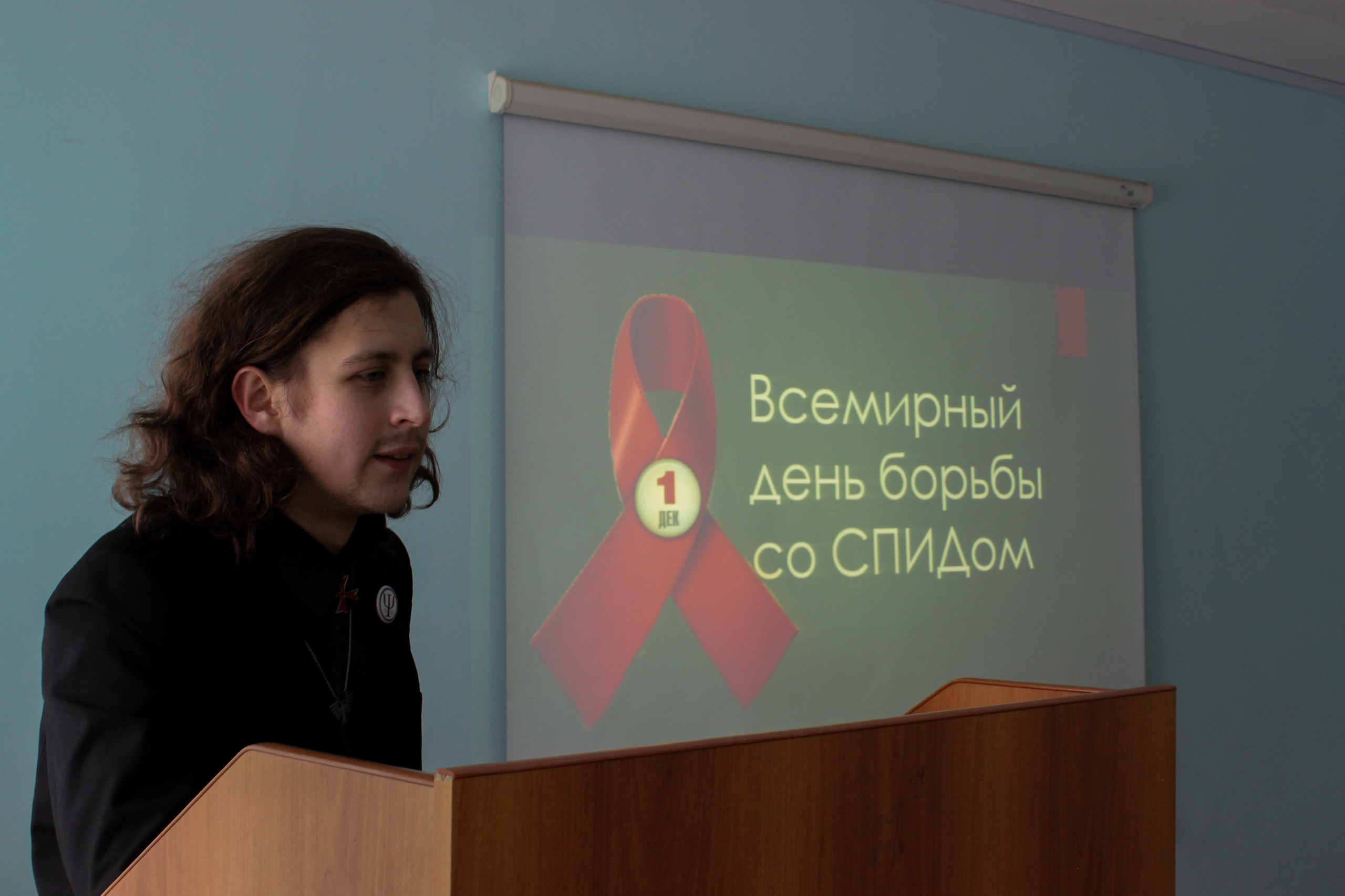 Совместно с представителем студенческого научного общества факультета психологии Семушкином Львом студенты узнали об истории этого опасного заболевания, разобрали вопросы о том, что такое СПИД и ВИЧ, где и как можно заразиться, и как этого избежать.
