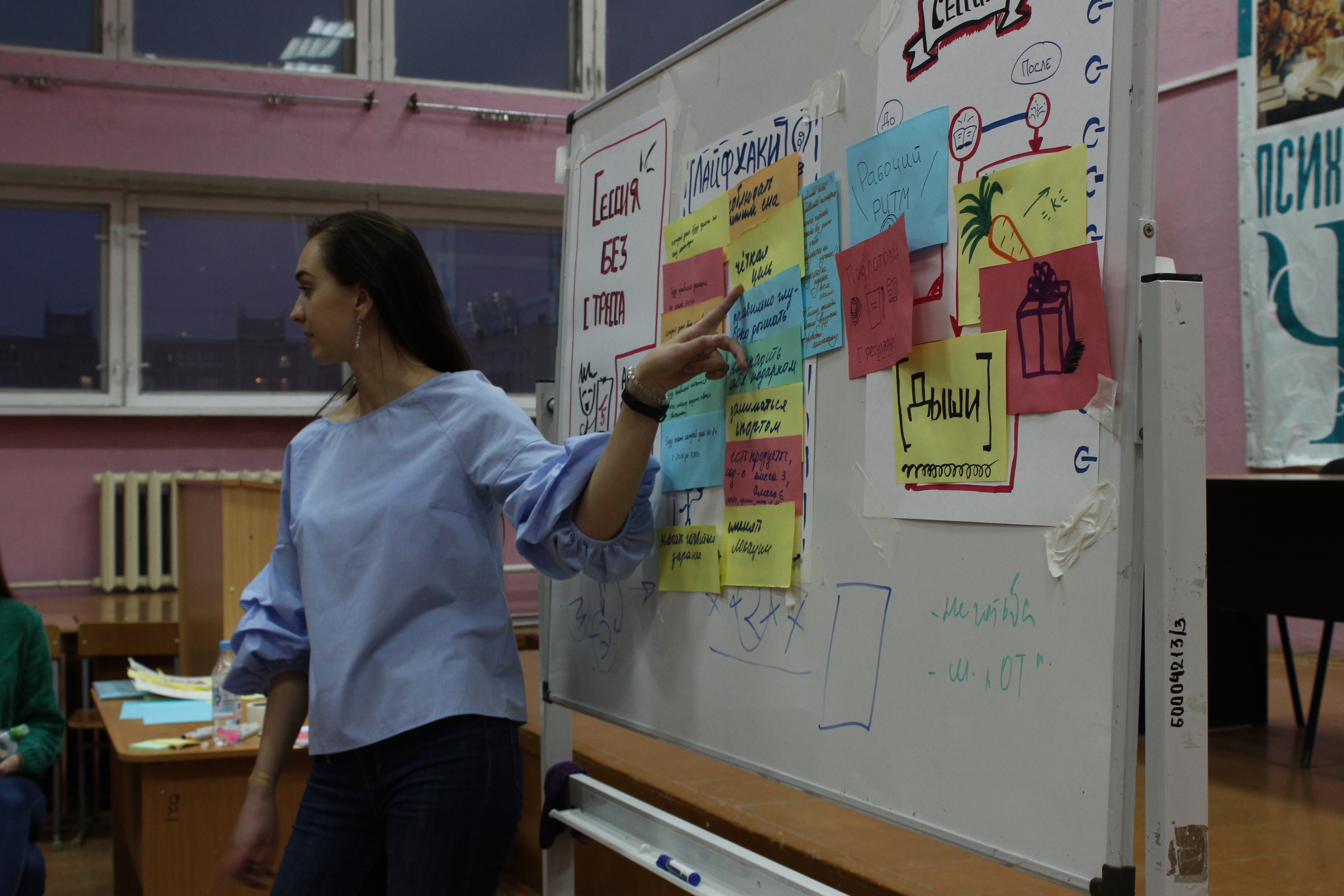 Анна поделилась различными лайфхаками и практическими рекомендациями по методам борьбы со стрессом, совместно со студентами разобрала, как лучше всего готовиться к экзаменам, ответила на все интересующие вопросы, и, в целом, обсудила с ними, как поменять свою жизнь в лучшую сторону. Тренинг был весьма насыщенный, ребята активно включались в дискуссии, делились мнениями и опытом с ведущей и сокурсниками.