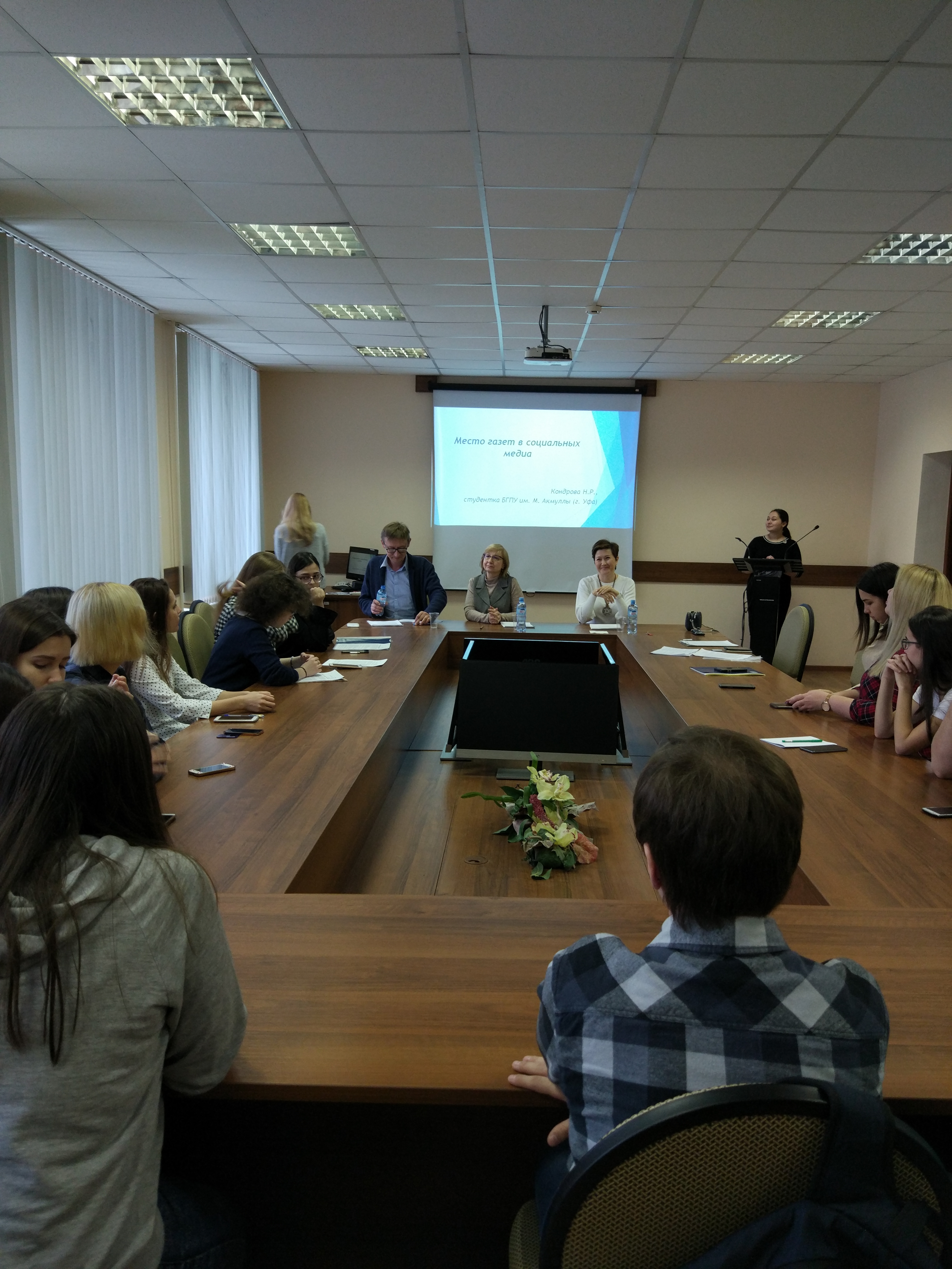 13 декабря 2018 г. в конференц-зале факультета психологии в рамках XIII Международных дней Мифтахетдина Акмуллы прошло  заседание совместной секции факультета психологии и социально-гуманитарного факультета «Кросскультурные исследования и психологические вопросы поликультурного образования». С приветственным словом к участникам и гостям секции обратился декан факультета психологии Виктор Курунов. Модераторы секции – заместители декана по научно-исследовательской работе ФП и СГФ - Алсу Биктагирова и Тимур Уразметов каждому участнику предоставили возможность поделиться результатами своих научных изысканий и рассмотреть актуальные вопросы гуманитарного знания в современном мире. На обсуждение в секции были представлены доклады Ибатуллиной Д.В.,  Кондровой Н.Р., Мельниченко Е.И., Минасян А.Ю., Миннихановой Д.Э., Старостиной М.В., Михайловой Е.И., Кожевниковой Я.А.