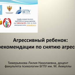 Вебинар в рамках ГЗ «Агрессивный ребенок: рекомендации по снятию агрессии»