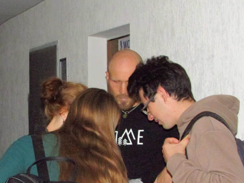Таким случаем нельзя было не воспользоваться и не пригласить его на естественно-географический факультет. Олег приехал раньше и уделил время встрече со студентами, посетил музей геологии ЕГФ, оставил автограф на карте России. Очень приятно было услышать от него "Надолго не прощаемся!". Мы обязательно будем планировать его встречу уже специально со студентами ЕГФ.