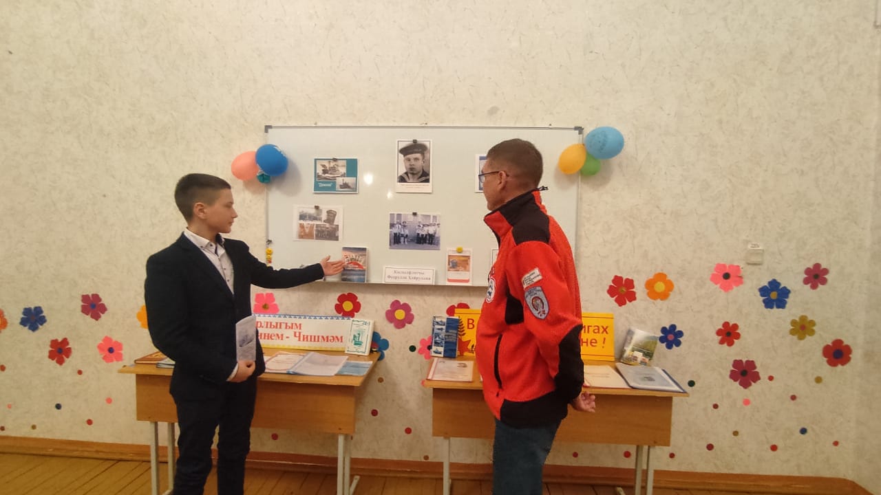 Ребята посмотрели фильм "Арктика-2021", снятый во время прохождения Северного морского пути широкомасштабной экспедицией "РоссиЯ-2021" @exp_russia_2021. Участник экспедиции, руководитель медиагруппы РО РГО в РБ, путешественник и журналист Рустам Сиразетдинов рассказал, что маршрут морского этапа экспедиции на научно-экспедиционном судне "Михаил Сомов" пролегал мимо острова имени Фахруллы Хайруллина, где все члены экспедиции отдали дань почтения погибшим в Великую Отечественную войну морякам. Наводчик орудия сторожевого катера СКР-19 Фахрулла  Хайруллин погиб в августе 1942 года. Отважный экипаж сторожевика вступил в неравный бой с линейным кораблём гитлеровского флота - крейсером "Адмирал Шеер" на рейде арктического порта Диксон. Благодаря мужеству советских моряков и защитников Диксона, немцы так и не смогли высадить десант и захватить порт. Полностью провалив операцию "Вундерланд" и так и не потопив ни одного советского судна, немецкий рейдер ретировался на свою базу в Норвегии. Экипаж сторожевого катера СКР-19 потерял в бою семерых членов команды. Сегодня семь островов в Карском море недалеко от Диксона носят имена погибших героев. Один из них в 1962 году был назван именем Фахруллы Хайруллина - уроженца села Чишма Дюртюлинского района Башкирии, где память о нем бережно хранят.