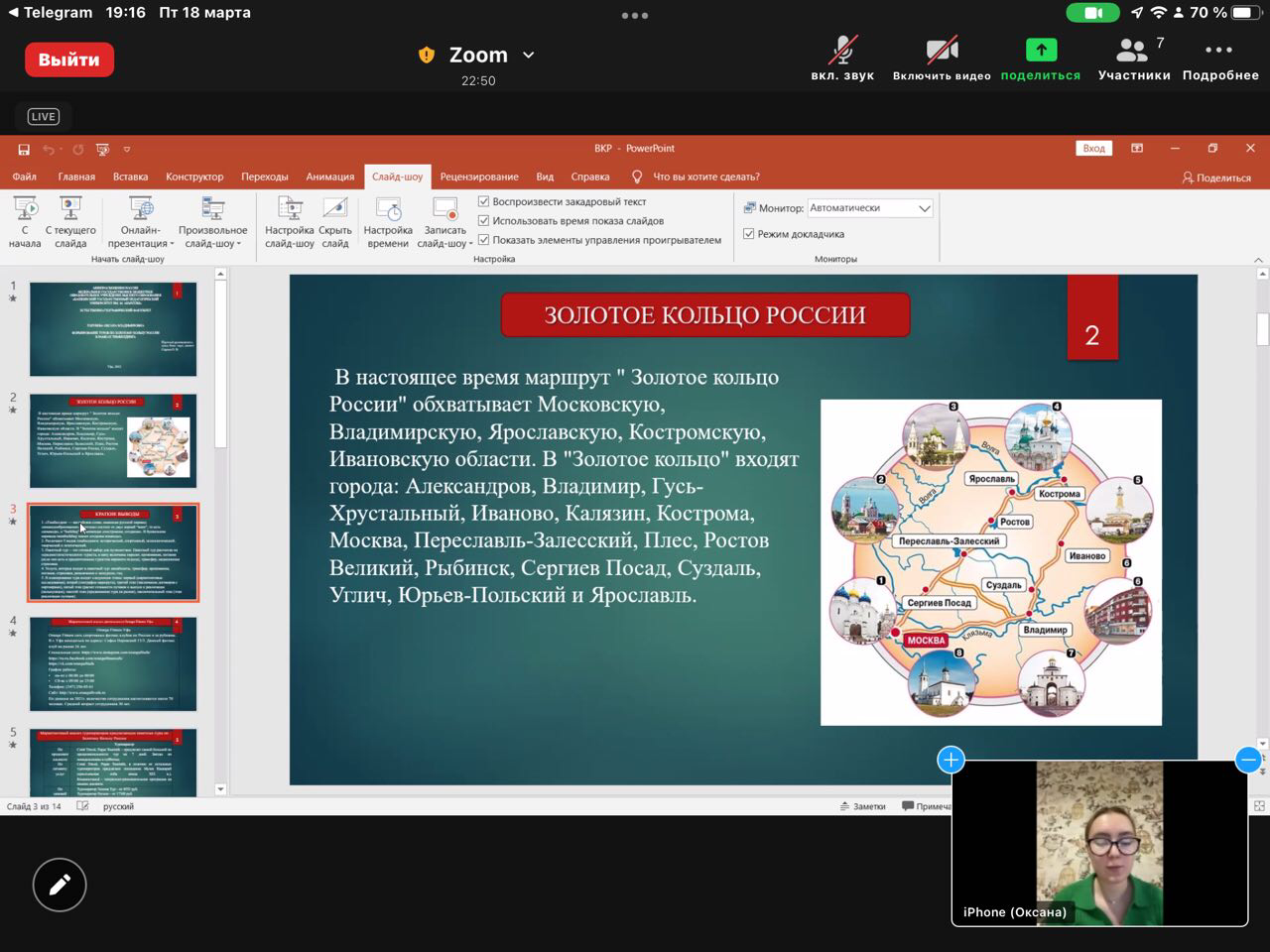В секции «Социально-экономические аспекты развития регионов» (вед. Р.Е. Рогозин, секретарь М.В. Деревягина) по видеосвязи выступили выпускницы - краснодипломницы 4 курса направления «Туризм» Оксана Голубева. с докладом на тему «ФОРМИРОВАНИЕ ТУРОВ ПО ЗОЛОТОМУ КОЛЬЦУ РОССИИ В РАМКАХ ТИМБИЛДИНГА» и Альбина Каримова с докладом на тему «ДВИЖЕНИЕ WORLDSKILLS RUSSIA В РЕСПУБЛИКЕ БАШКОРТОСТАН И ЕГО ВЛИЯНИЕ НА ТУРИСТСКИЙ ПОТЕНЦИАЛ РЕГИОНА» (научный руководитель – канд. биол. наук, доцент О.В. Серова).