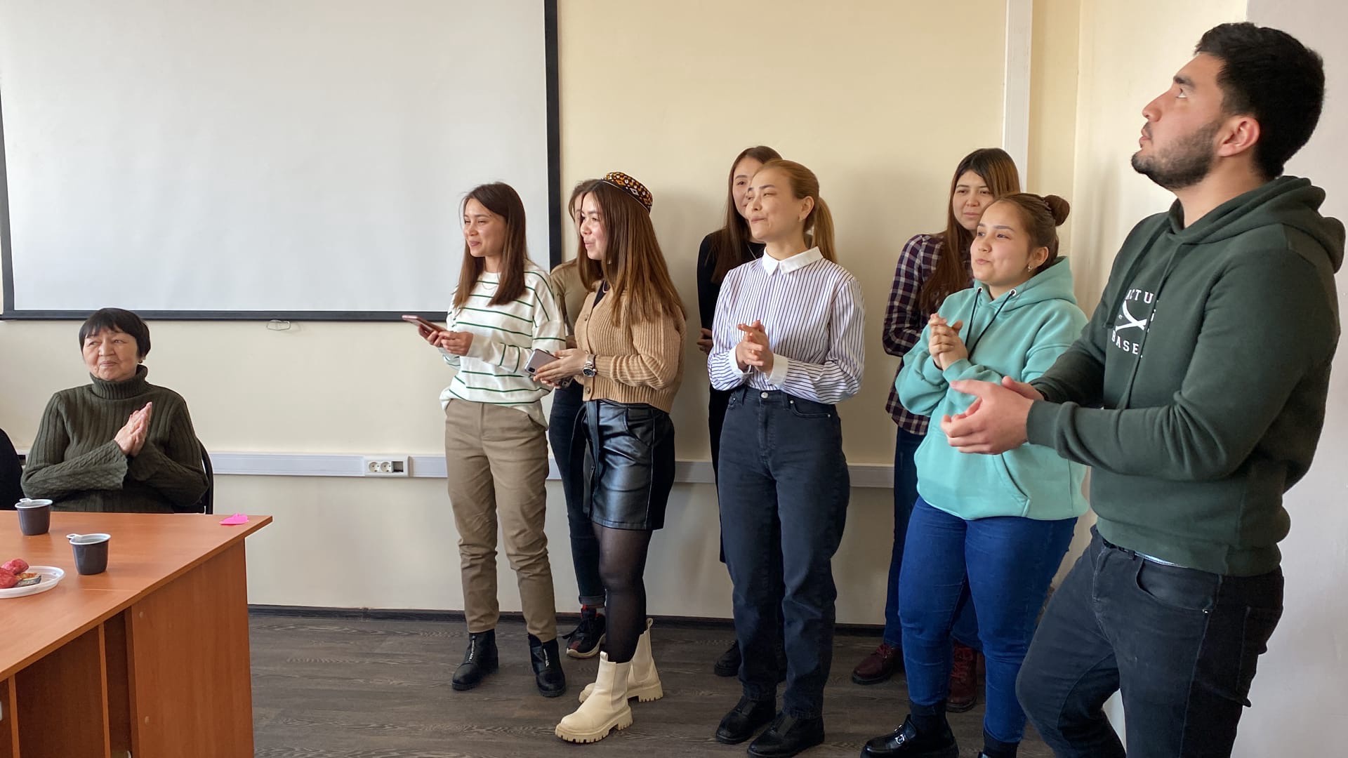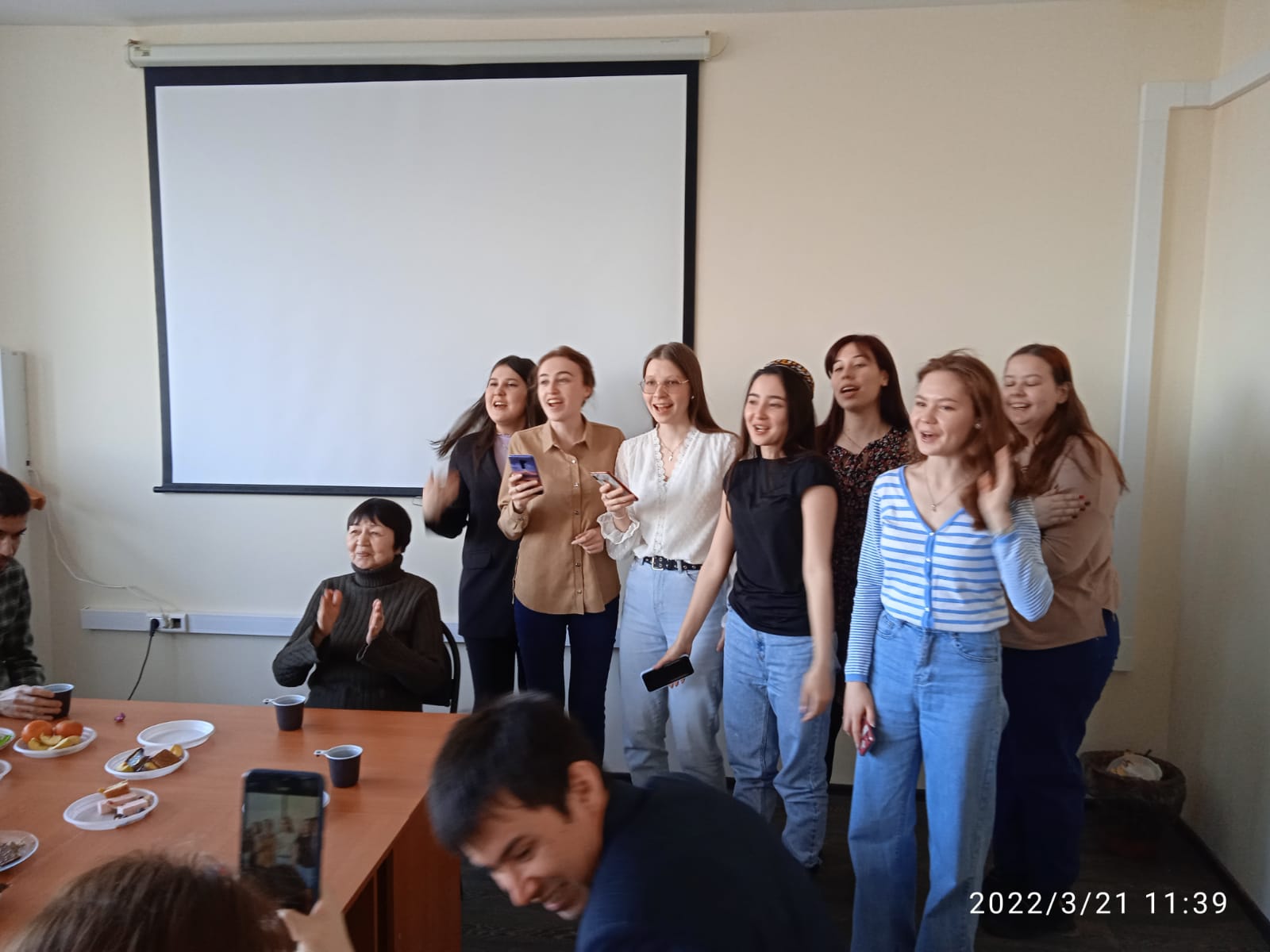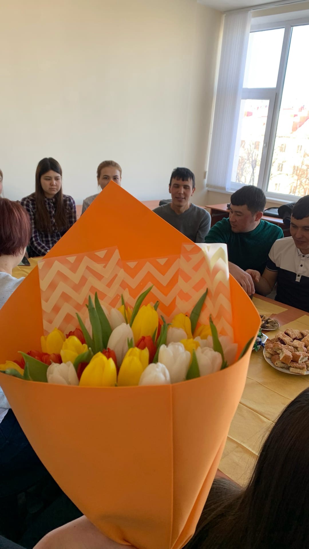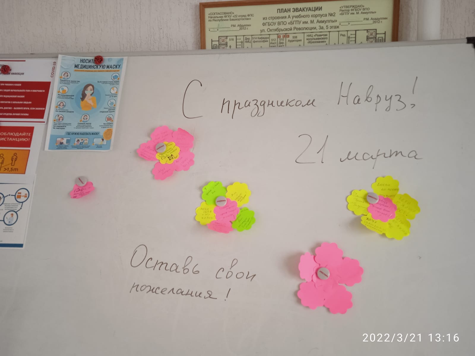 Весна идет! Весна - это цветы, и цветы сегодня тоже дарили девчонкам. И еще дарили друг другу песни и танцы - звучали песни на татарском, туркменском, русском языках. "Туган як" ("Родной край") сменялся одой Туркменистану, а завершилась встреча песней "Мы желаем счастья вам!" В честь праздника весны ребята написали пожелания друг другу и всем нам и разместили их в холле нашего этажа. НАВРУЗ менан!