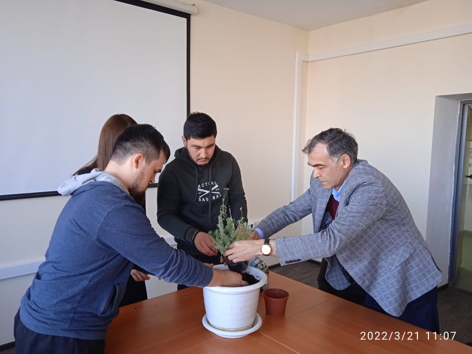 И сегодня начало праздника НАВРУЗ отметили на естественно-географическом факультете, где учится много студентов из стран Азии, где этот праздник имеет государственное значение. Больше всего среди них ребят из Туркменистана - так сложилось, что на ЕГФ учится 48 студентов из этой страны (всего в вузе - 93). Но это общий праздник, двери были открыты для всех. Поздравить с праздником пришли преподаватели кафедры экологии, географии и природопользования, декан ЕГФ Венер Нуруллович Саттаров, начальник управления международных связей Радик Зинатович Юлбаев. Старший преподаватель Зимфира Шарифьяновна Тимербаева рассказала об особенностях празднования у разных народовх. Одним из обычаев НАВРУЗА во многих странах является посадка деревьев в эти дни. Поскольку у нас еще очень холодно, мы всё же соблюли традицию и пересадили в большое кашпо многолетнюю лаванду - пусть растет и радует нас своим цветом и запахом!
