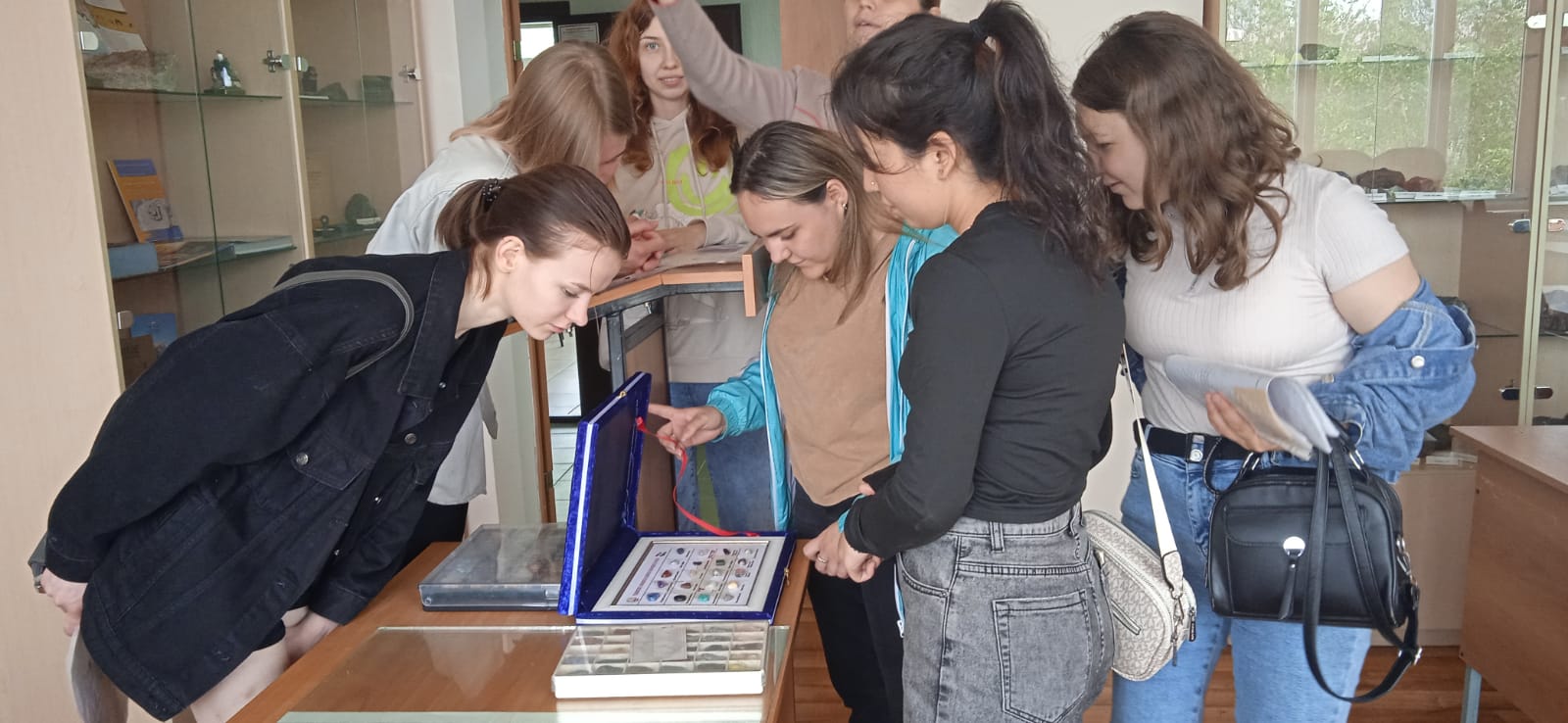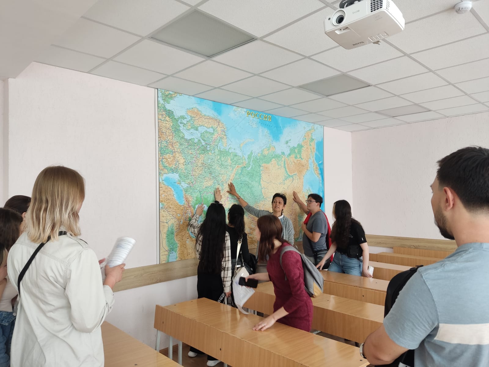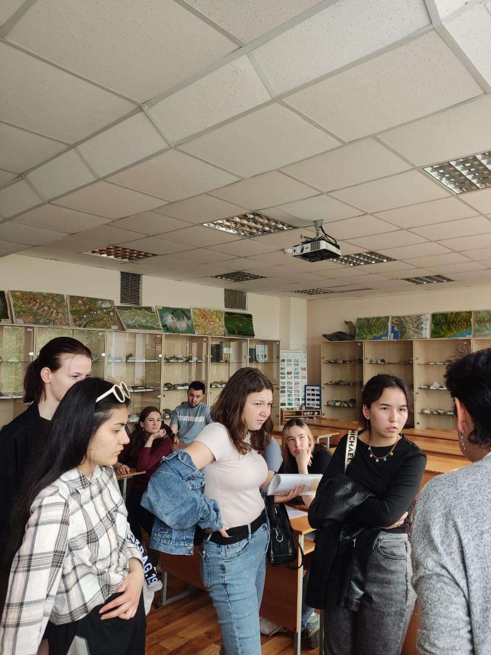 Сегодня с большой подробной экскурсией естественно-географический факультет посетили выпускники колледжа нашего университете. Они здесь не впервые - у многих занятий профессионального модуля проходили в специализированных аудиториях факультета, например, по специальности "Рациональное использование природохозяйственных комплексов". Но одно дело - приходить по расписанию в одну и ту же аудиторию, а совсем другое - получить возможность пройти по всем помещениям, задать все возникающие вопросы, прикоснуться к формату вузовской студенческой жизни. На ребят произвел приятное  впечатление тот факт, что на факультете есть кабинет самостоятельной работы студентов - комната, где они могут находиться в любое время между парами или на перемене, где есть возможность самостоятельной работы на компьютере, доступ к литературе кафедры и просто место для спокойной работы в большой перерыв. Прикоснулись (в прямом смысле слова) к рельефной карте России - изучение страны доступно и людям со слабым зрением, эта карта помогает формированию пространственного восприятия расположения физико-географических объектов. Изучать субъекты России, административно-территориальное устройство регионов и даже расположение костей черепа можно и на специализированных сайтах - многие сразу через телефон зашли на один из таких (какой именно - скажем когда придете к нам лично, не будем делать рекламу стороннему ресурсу в неучебных целях :-).