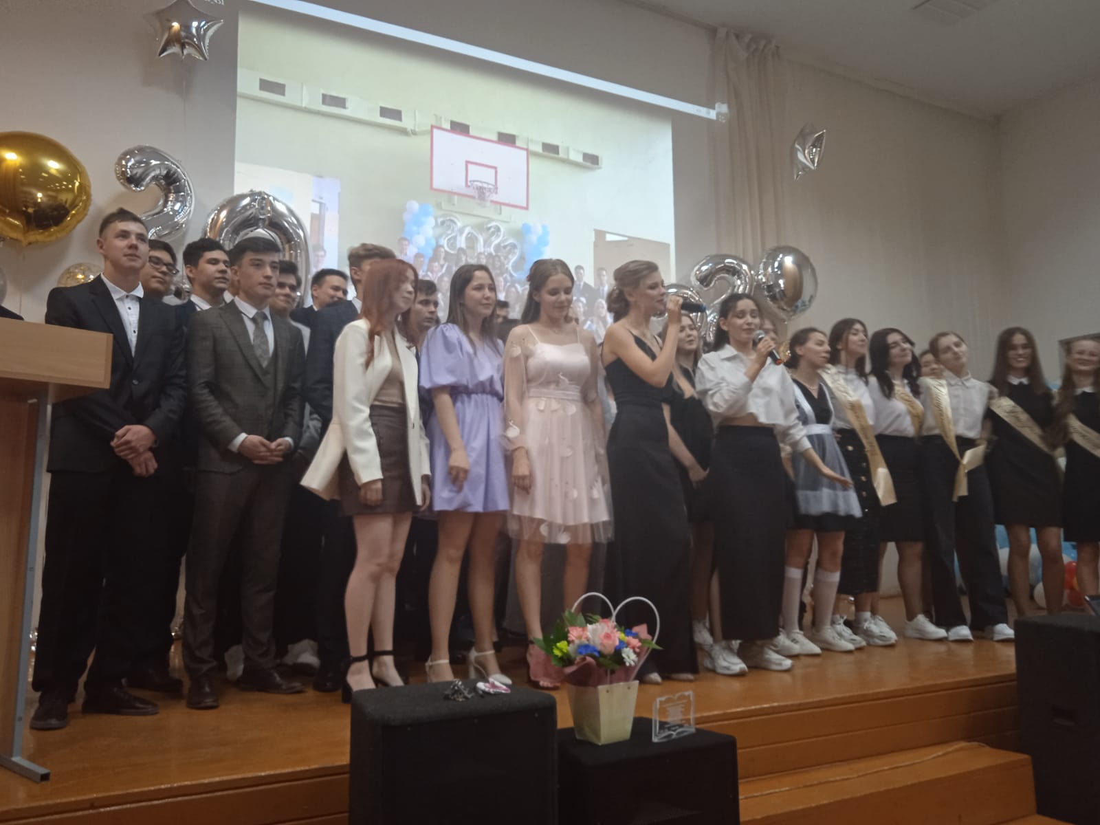 Фоторяд длиной в осознанную жизнь - от детского сада до дня сегодняшнего, очень трогательная песня - обращение к родителям (плакали все, и в зале и на сцене), торжественное вручение документов о среднем образовании - и пожелание побыстрей передать их в приемную комиссию того вуза, что выбрали сердцем (зачисление в этом году исключительно по наличию оригинала, в отличие от двух предыдущих лет).