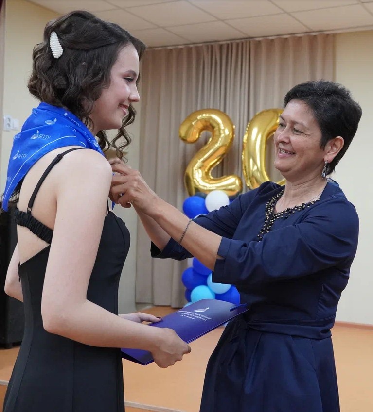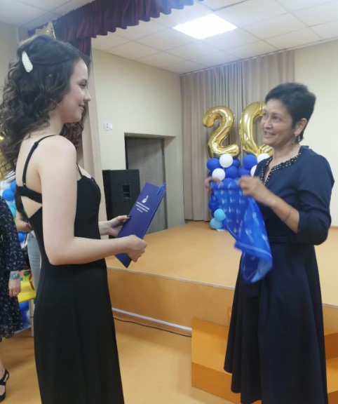 В Центре образования №25 из нынешнего выпуска один человек точно решил идти в педагогический. Подарили на удачу наш вузовский галстук-косынку, от всей души пожелали Анастасии, чтобы всё сложилось в её пользу, потому что через пять лет она планирует вернуться в свою родную школу учителем иностранного языка. В добрый путь, ребята!