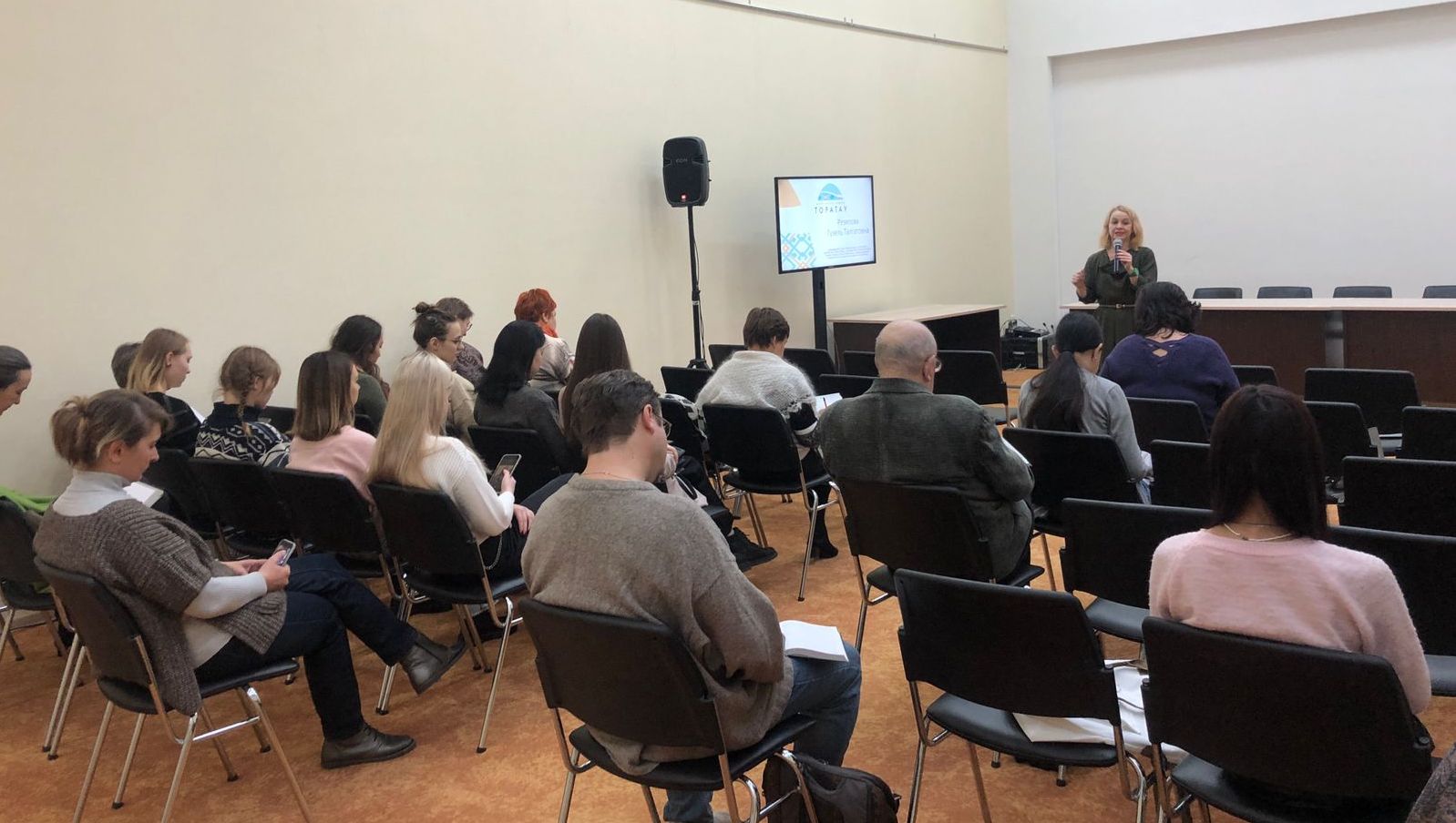 Первый мастер-класс по ораторскому мастерству проводит Резяпова Гузель Талгатовна, руководитель студии переговоров и ораторского мастерства «Театр слова» (teatrslova.ru), кандидат филологических наук, бизнес-тренер, лектор, бизнес-коуч, тренер-лицензиат «Университета риторики и ораторского мастерства» (г. Москва). Студенты группы ТОЭУ 31-20 получили практические навыки в ведении экскурсии, выполняли задания в парах, узнали лайфхаки выступления перед большой аудиторией.